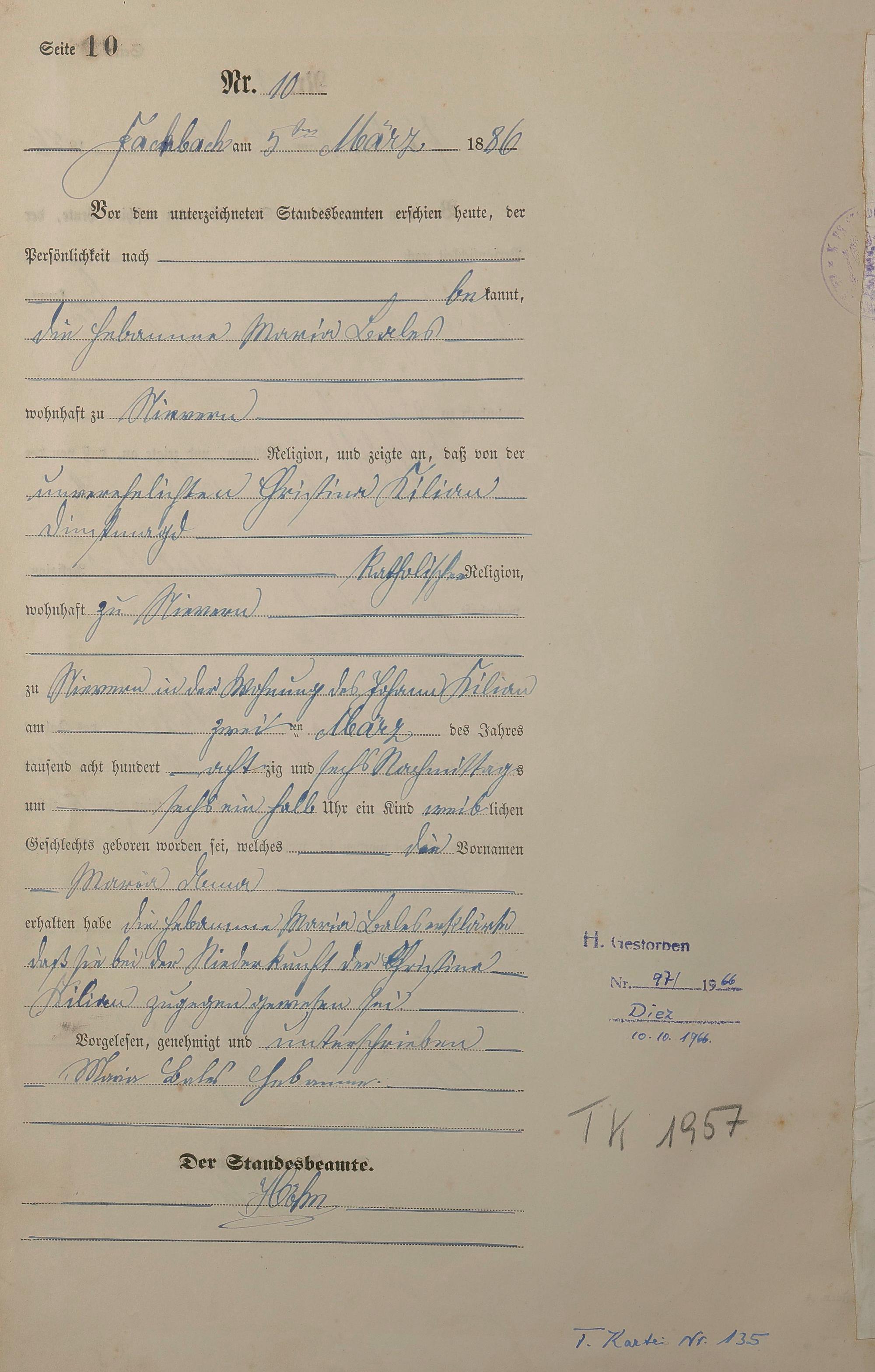 Geburtsregister 1886