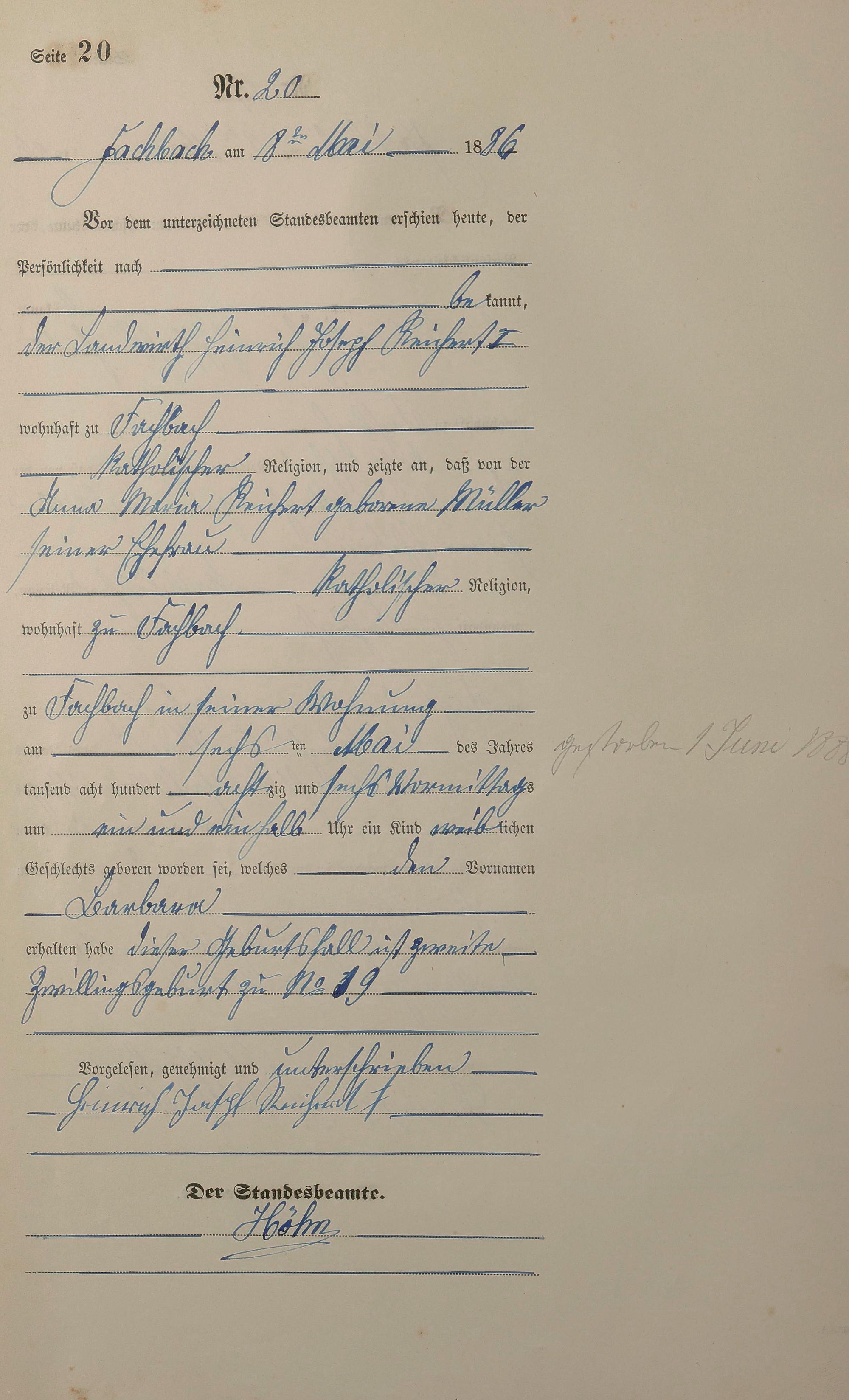 Geburtsregister 1886