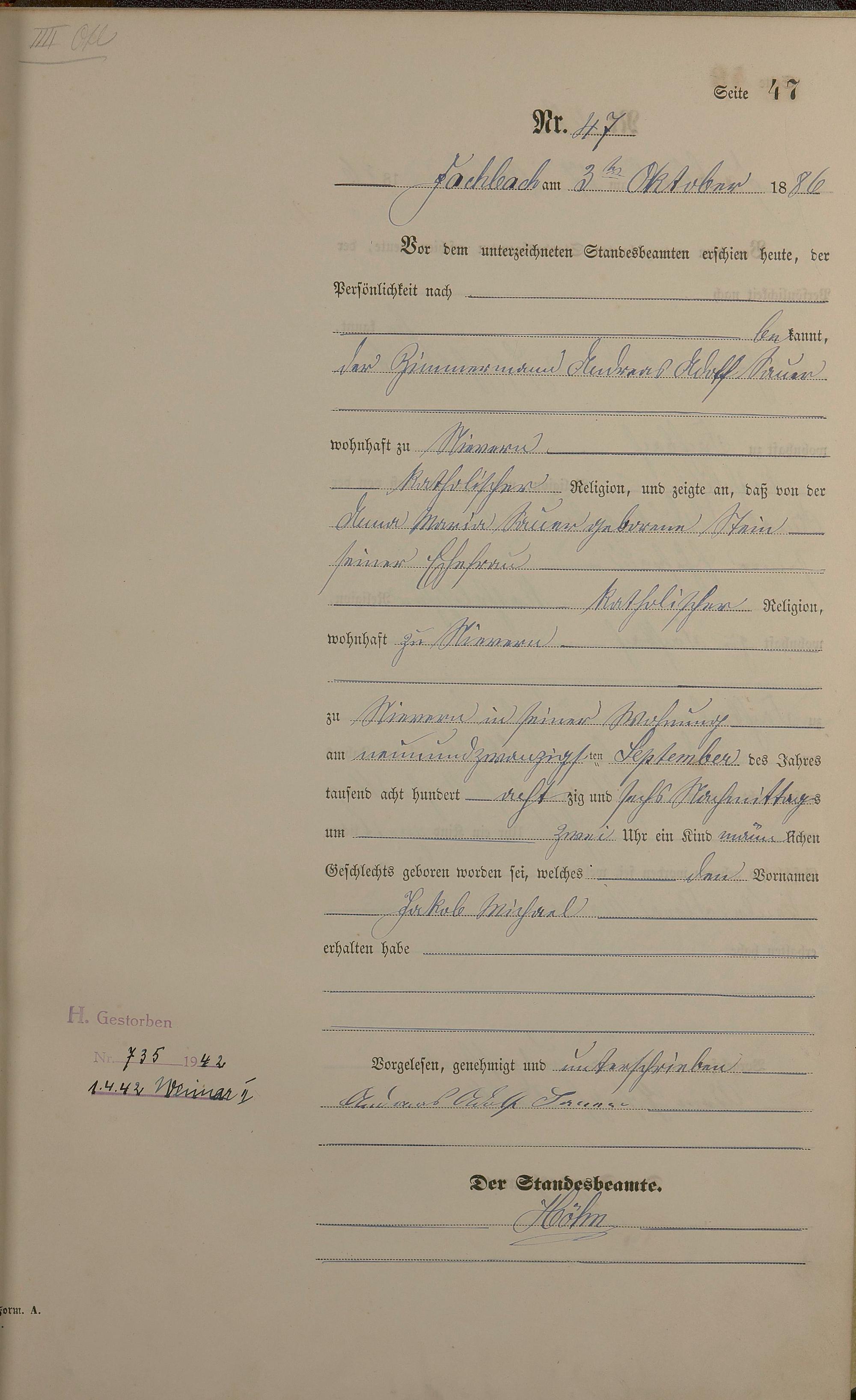 Geburtsregister 1886