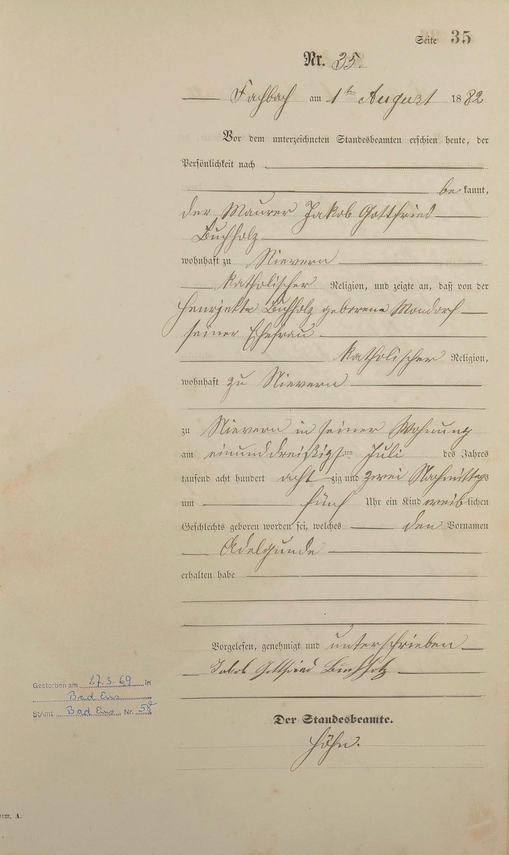 Geburtsregister 1882