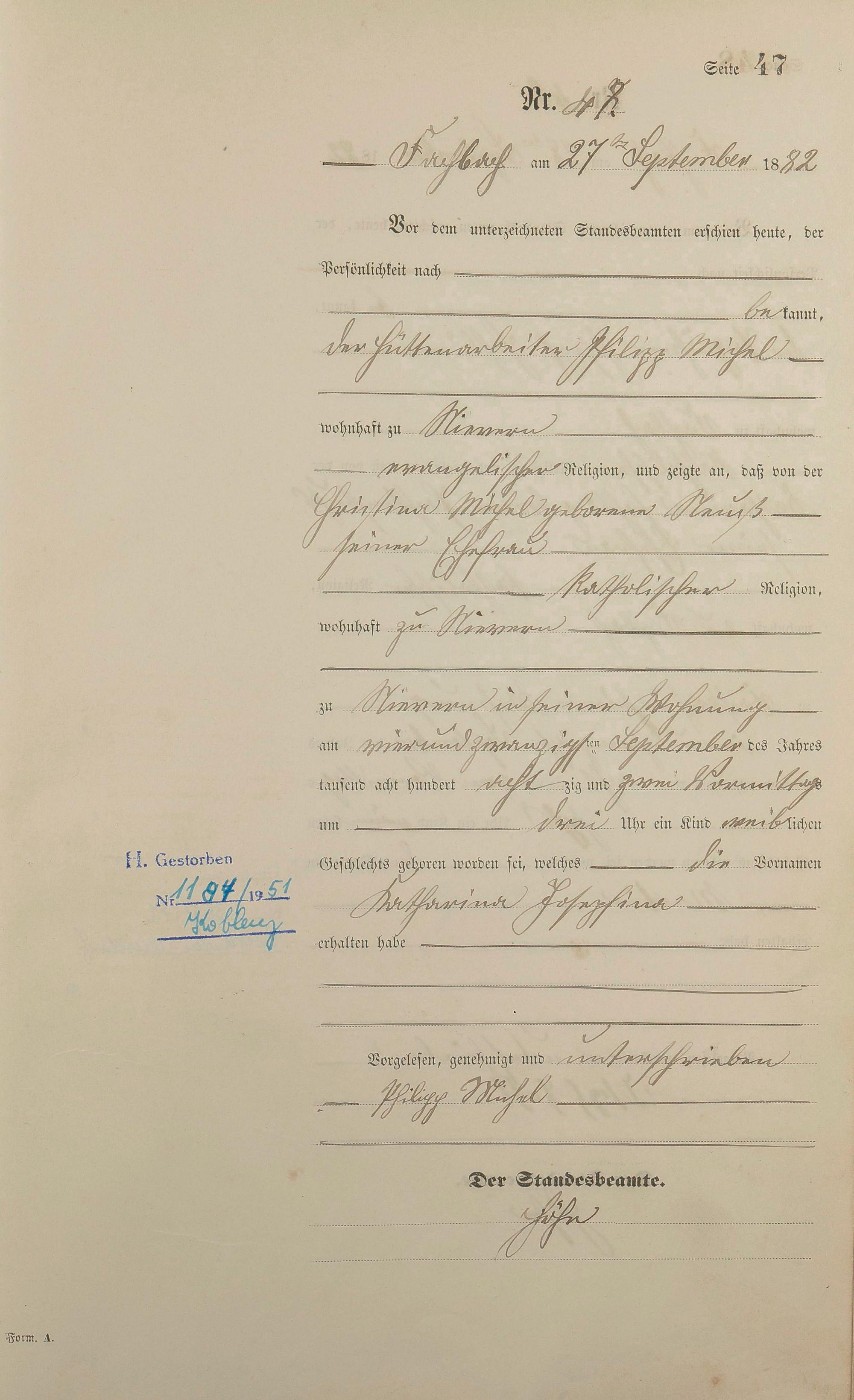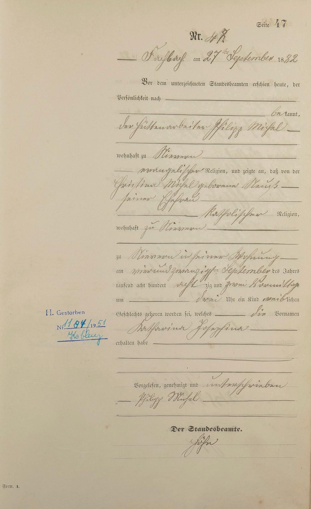 Geburtsregister 1882