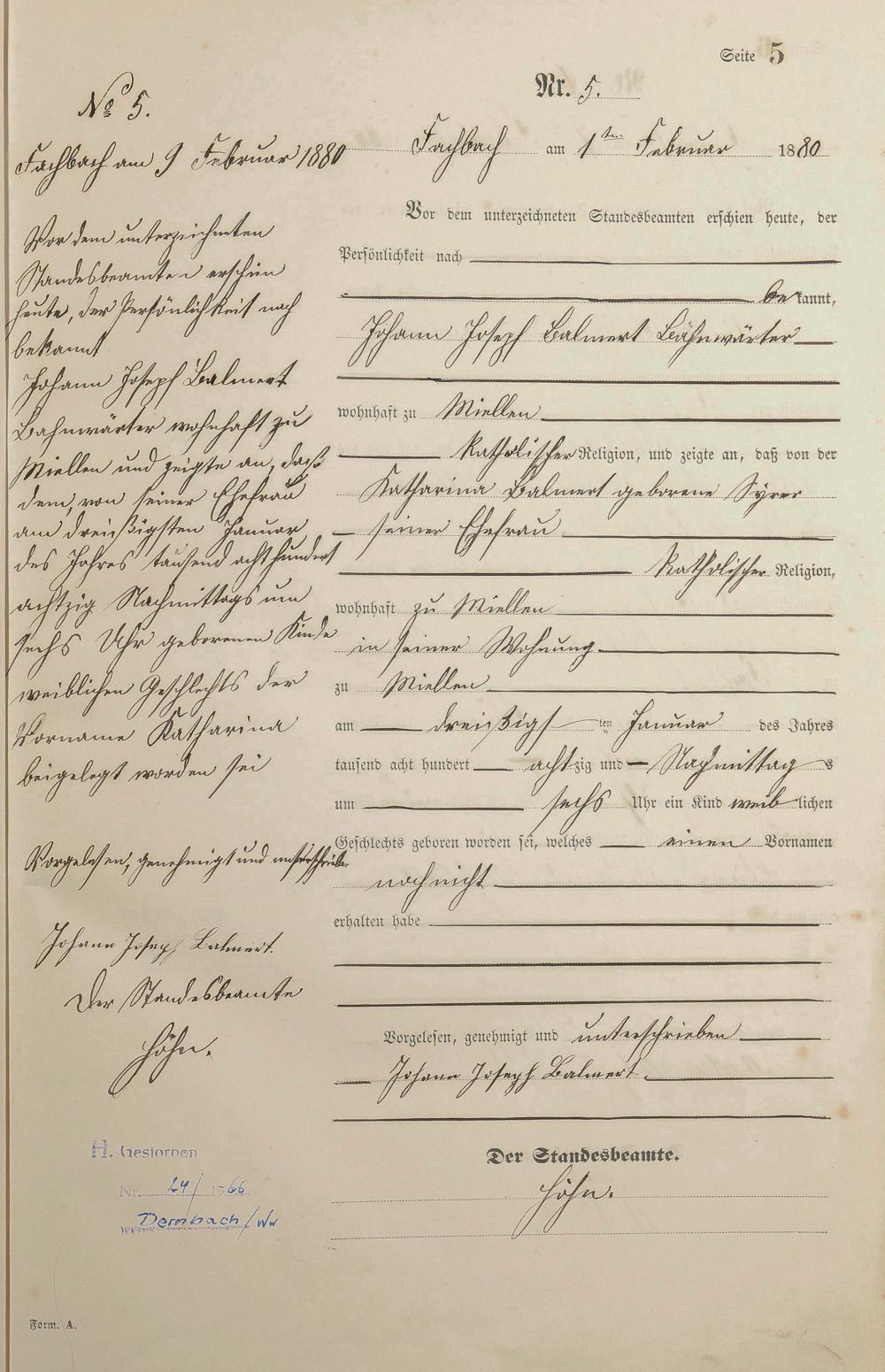 Geburtsregister 1880