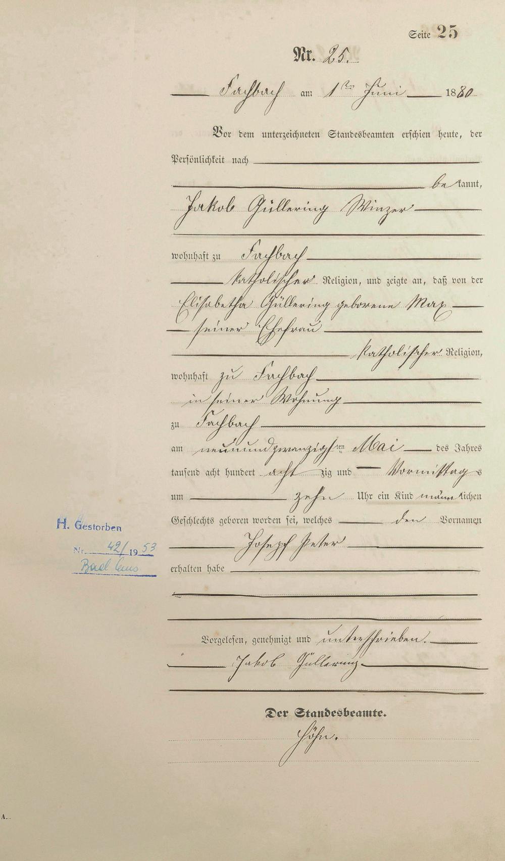 Geburtsregister 1880