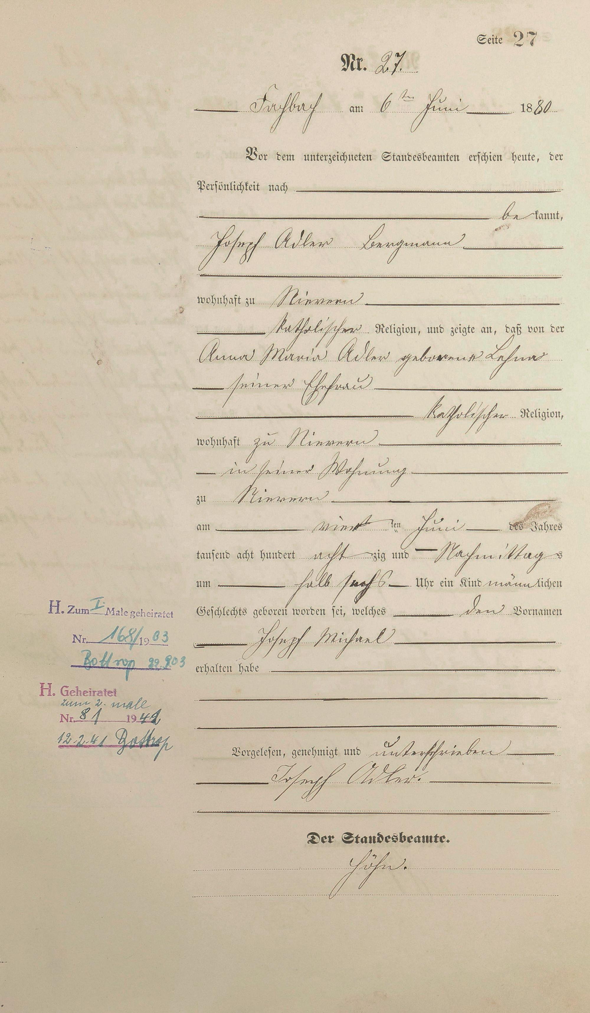 Geburtsregister 1880