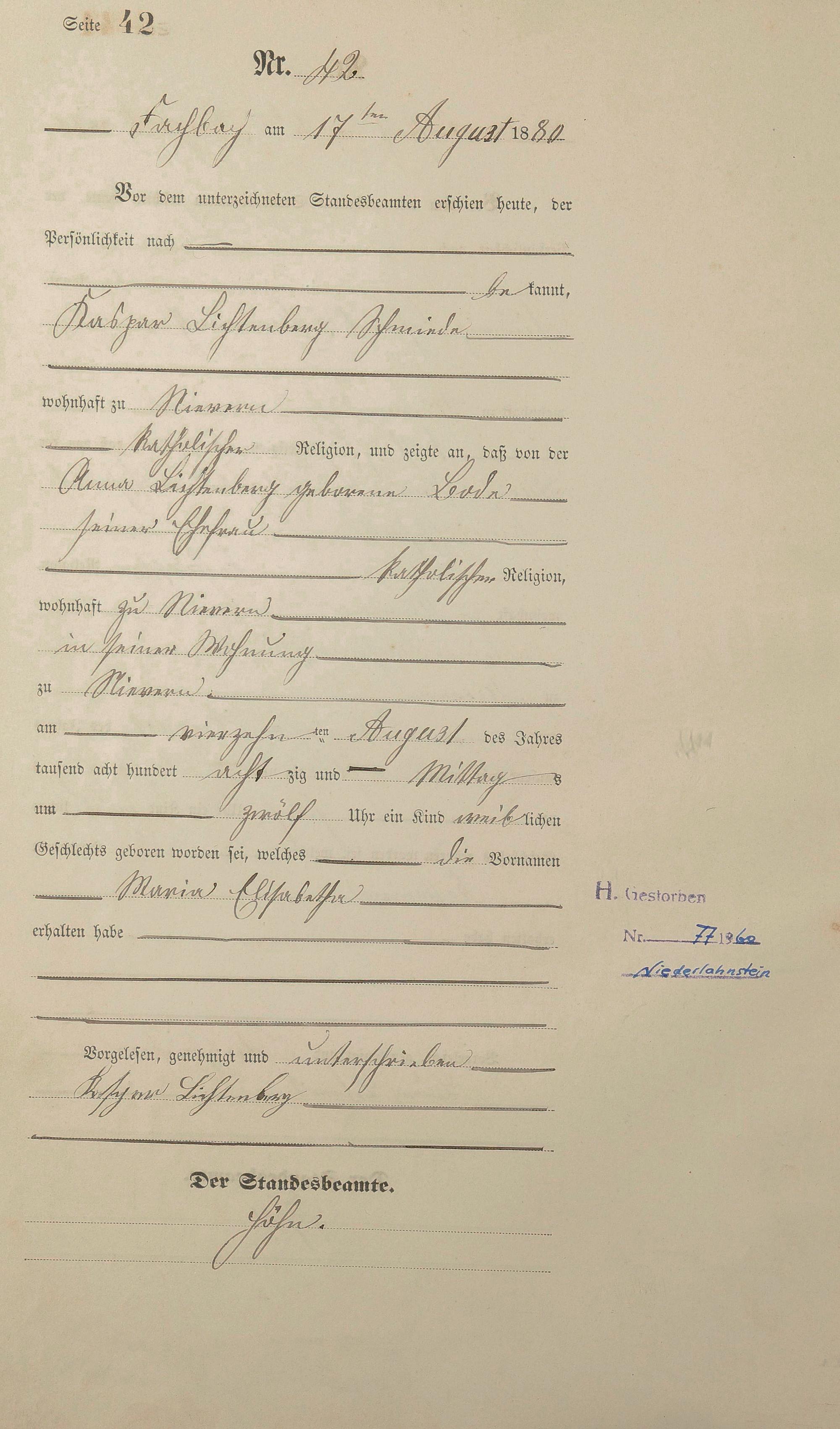 Geburtsregister 1880