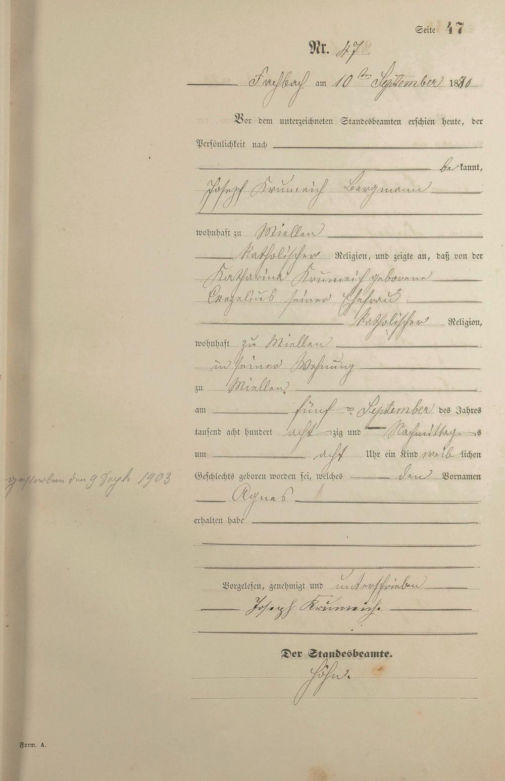 Geburtsregister 1880