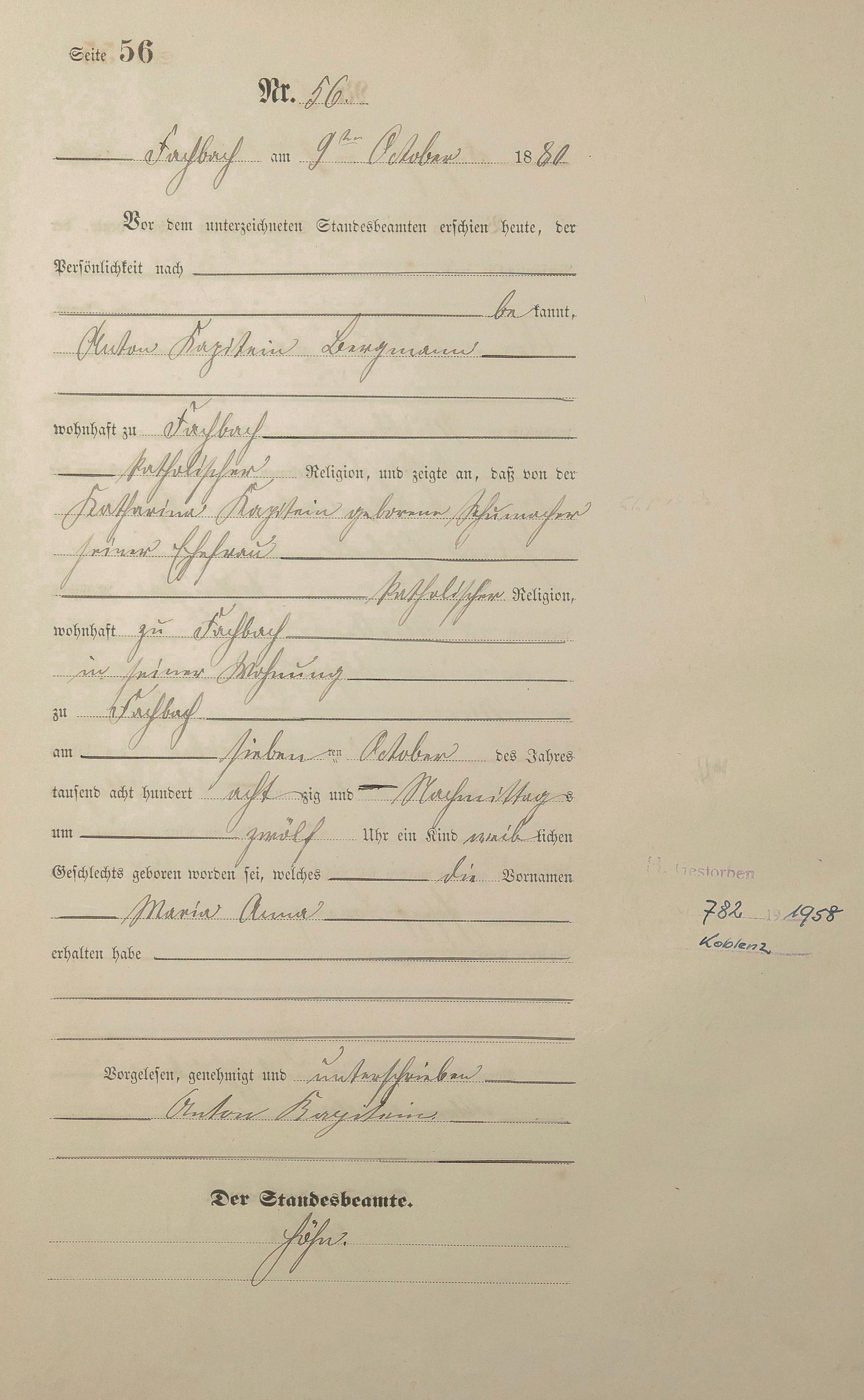 Geburtsregister 1880