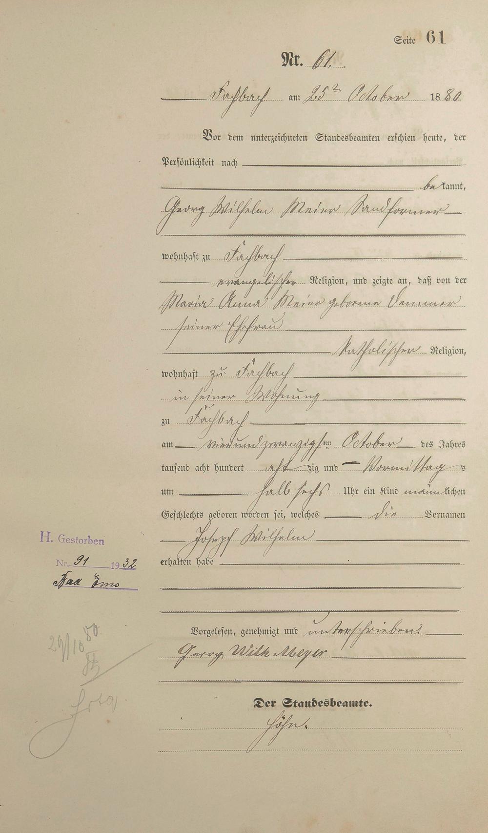 Geburtsregister 1880