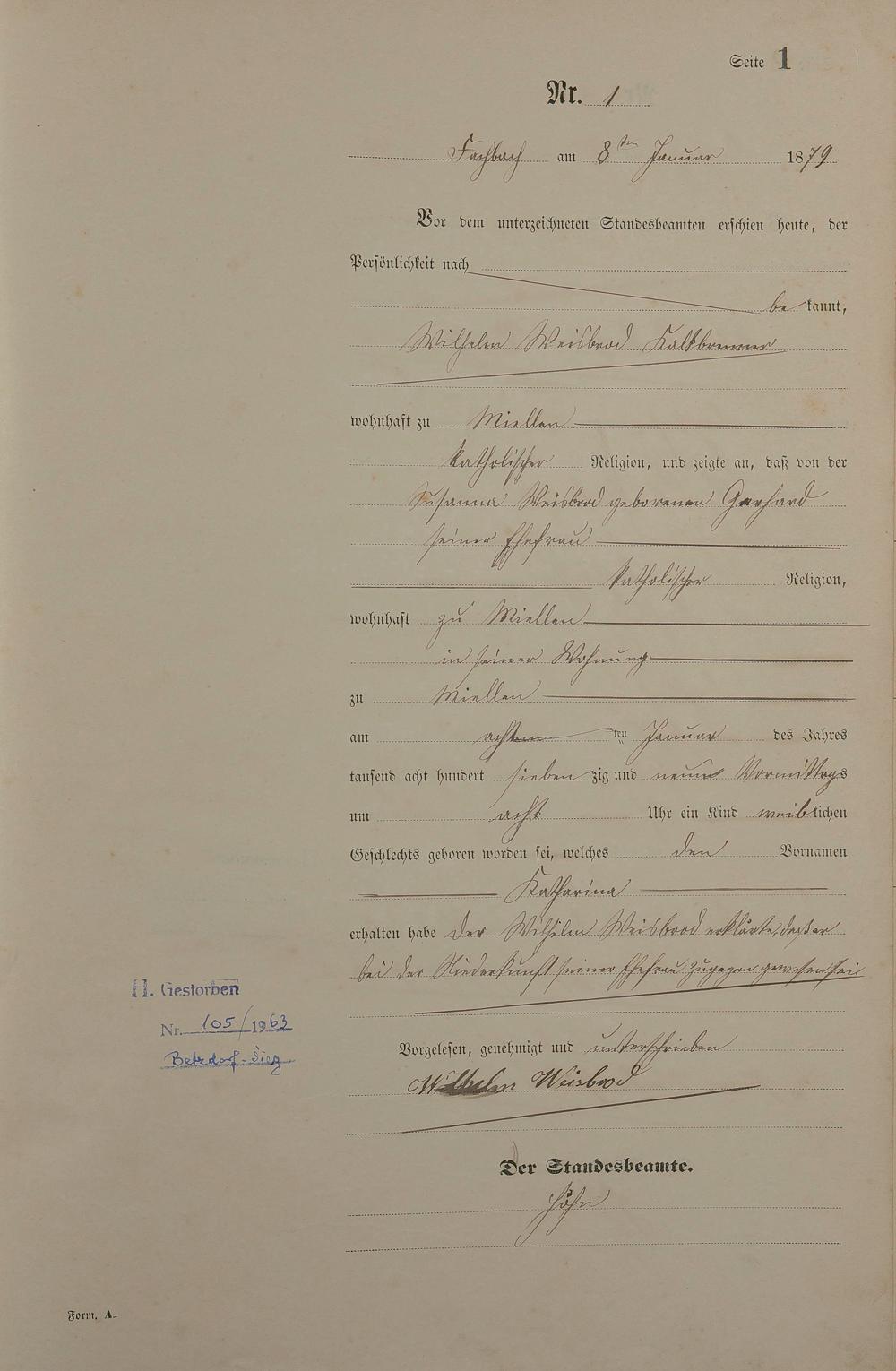 Geburtsregister 1879