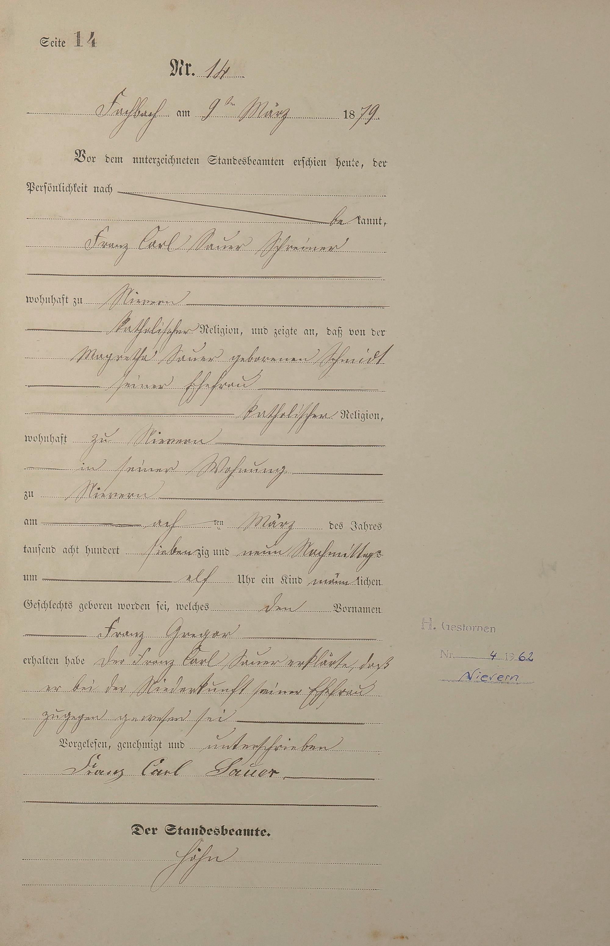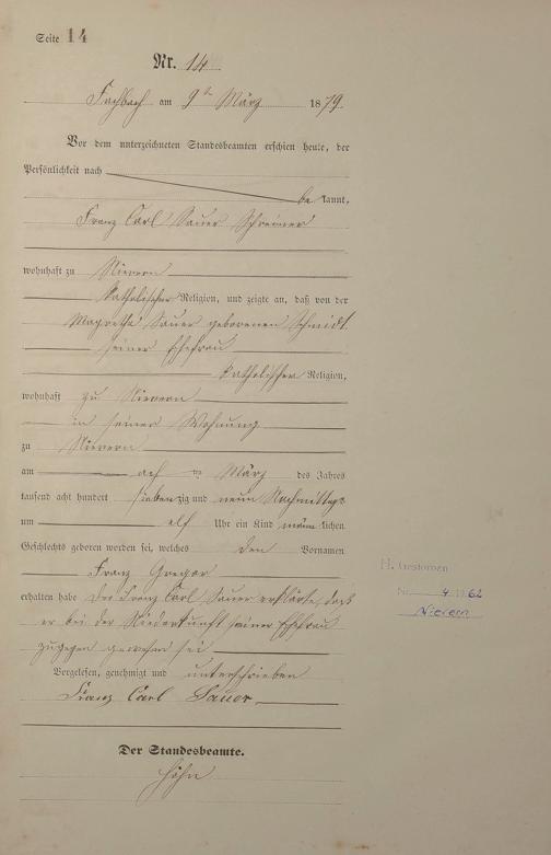 Geburtsregister 1879