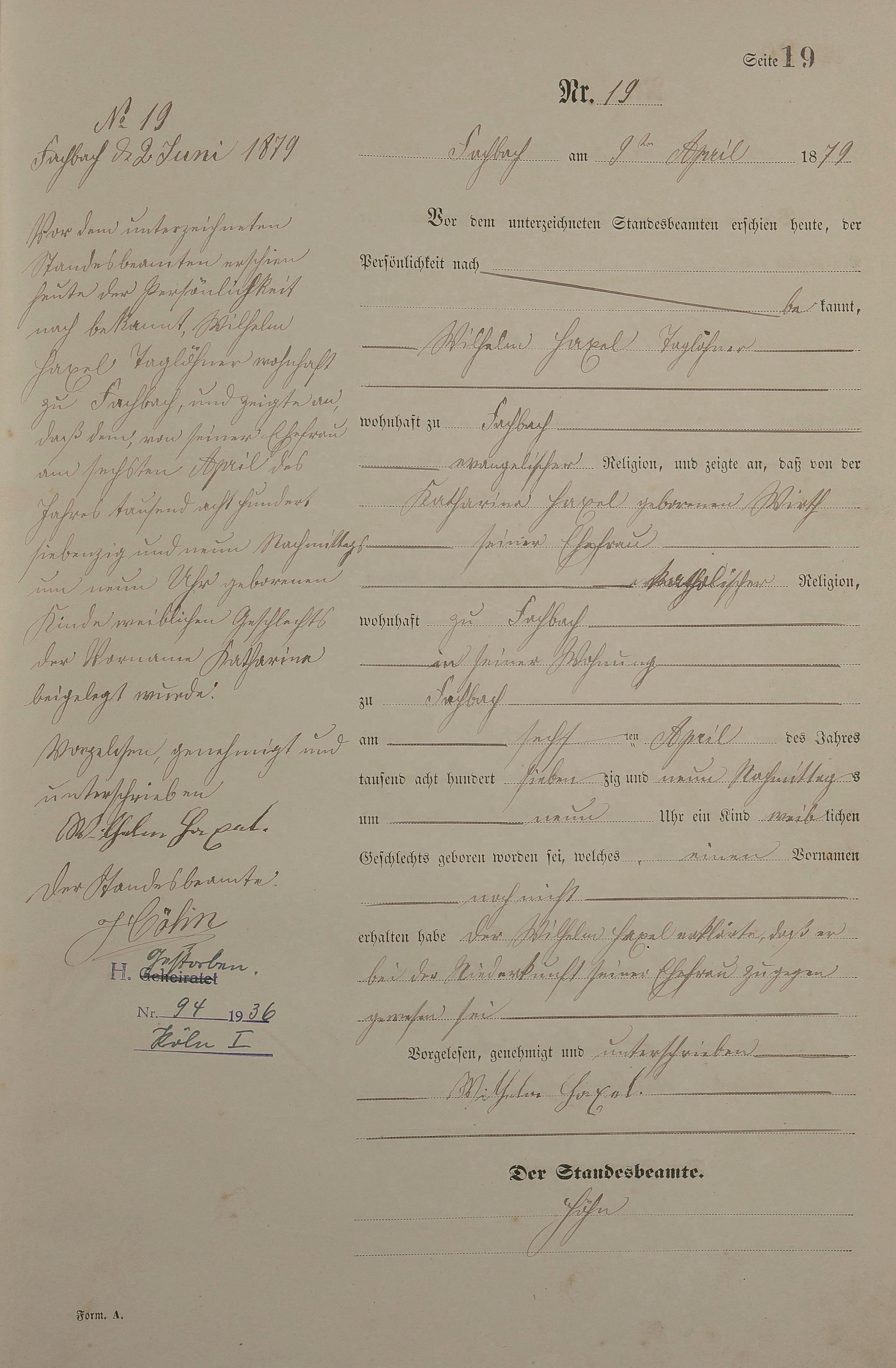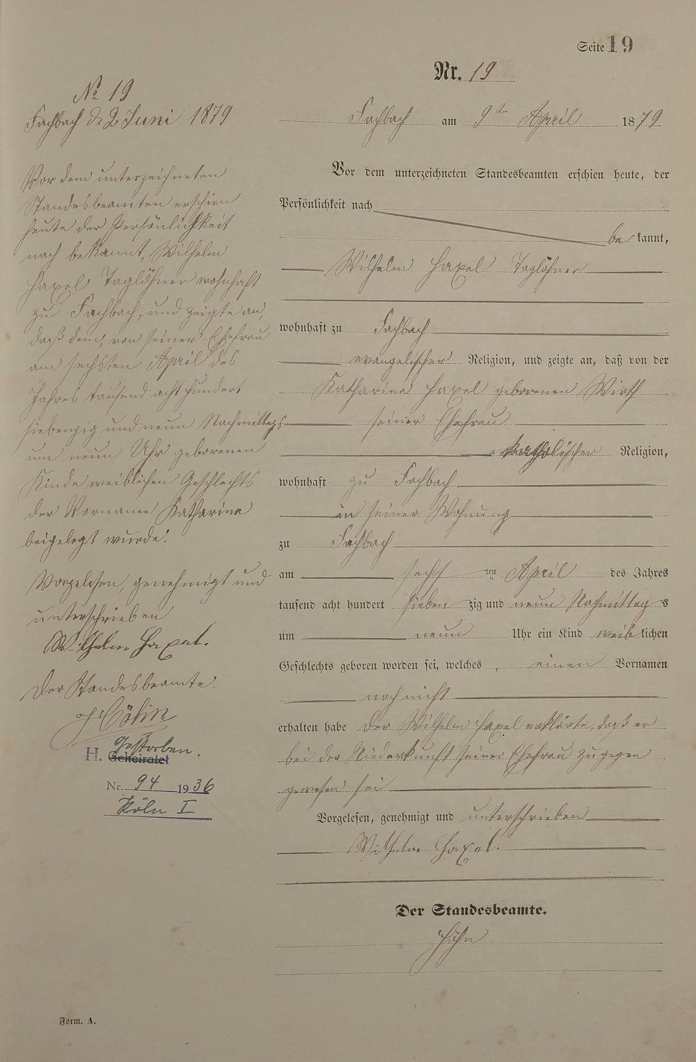 Geburtsregister 1879