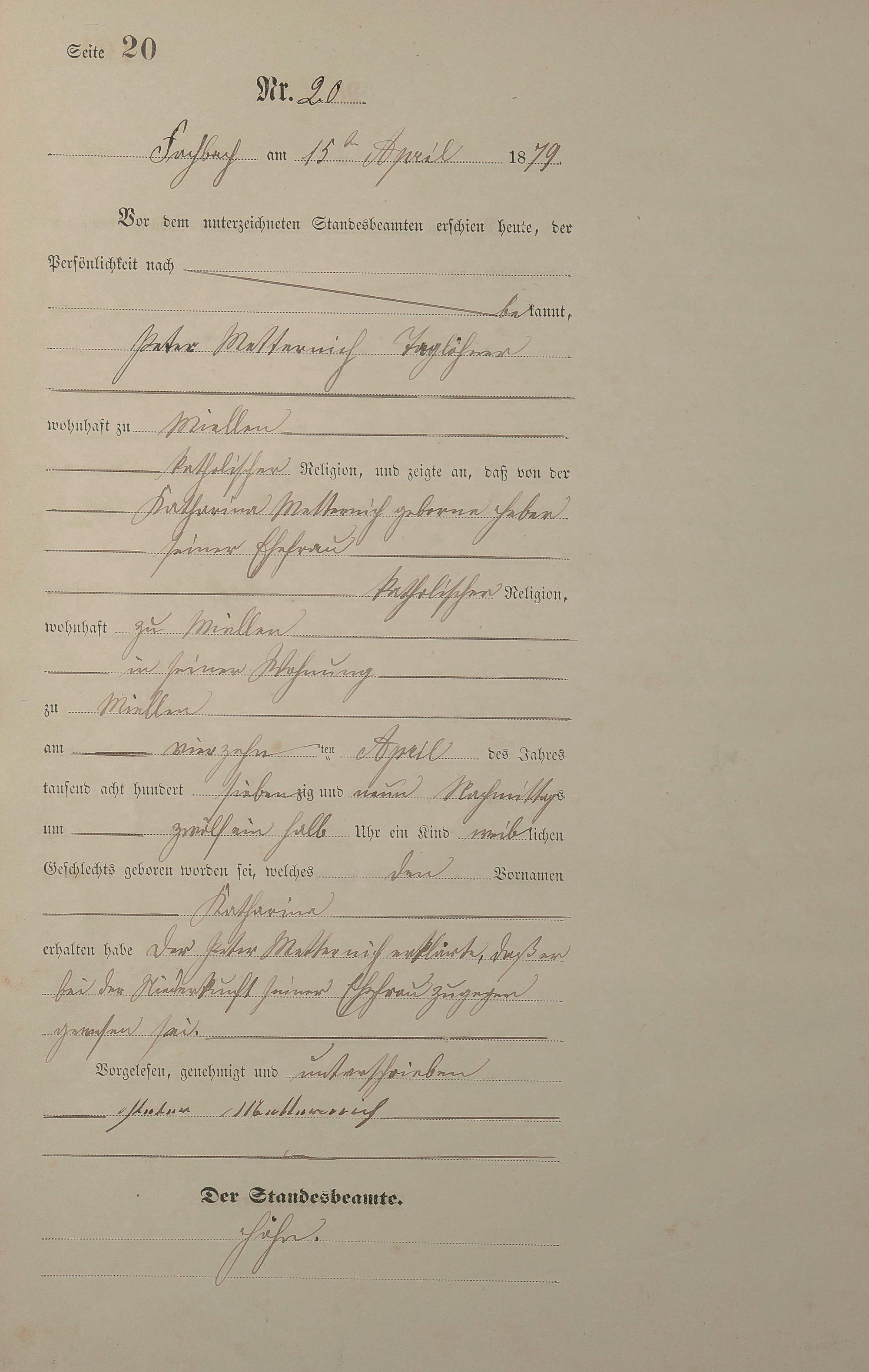 Geburtsregister 1879