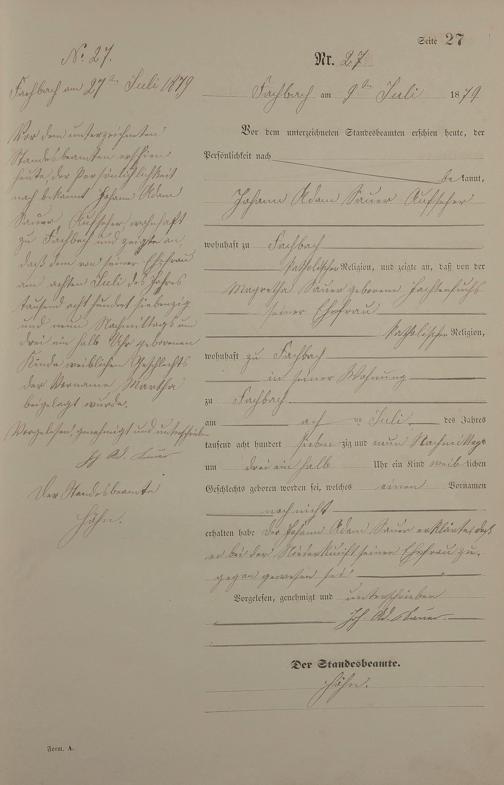 Geburtsregister 1879