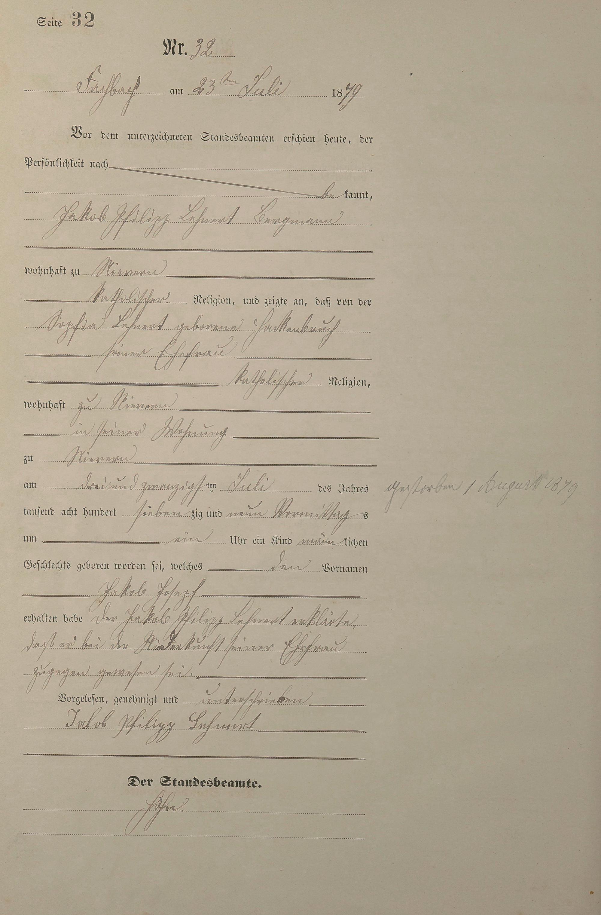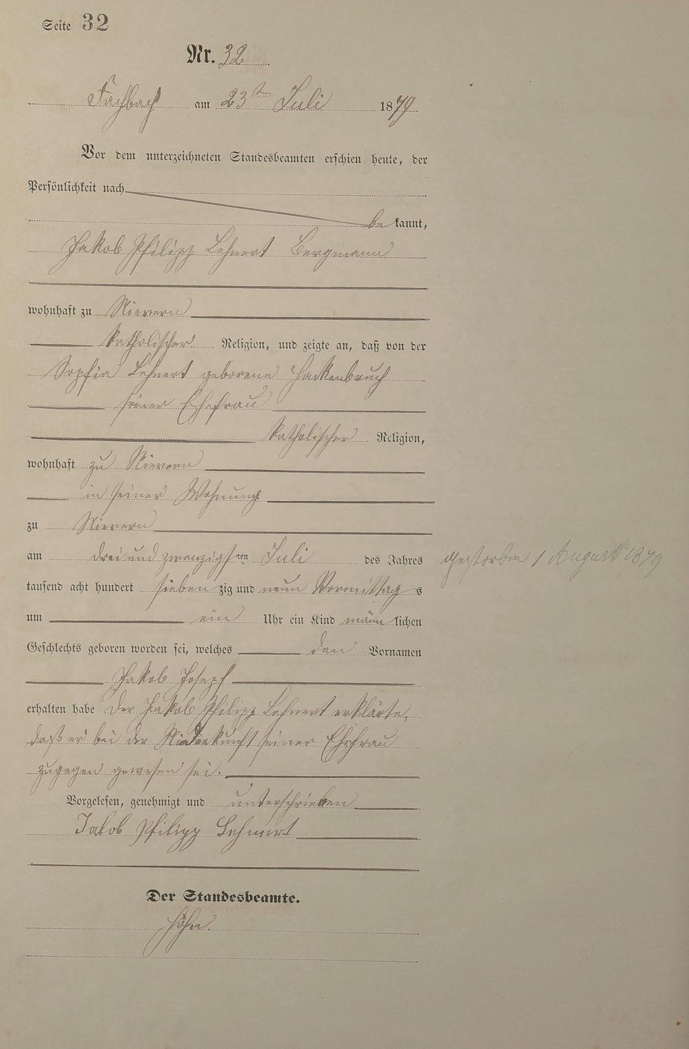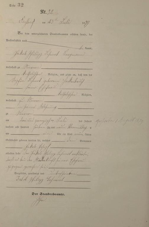 Geburtsregister 1879