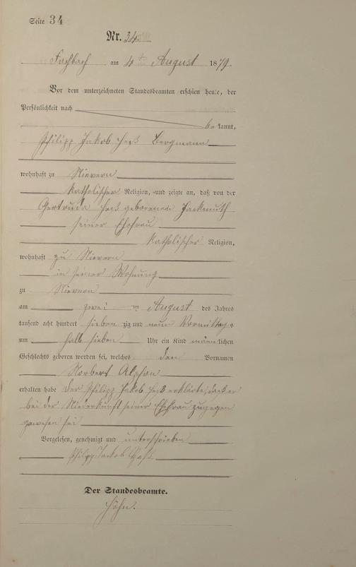 Geburtsregister 1879