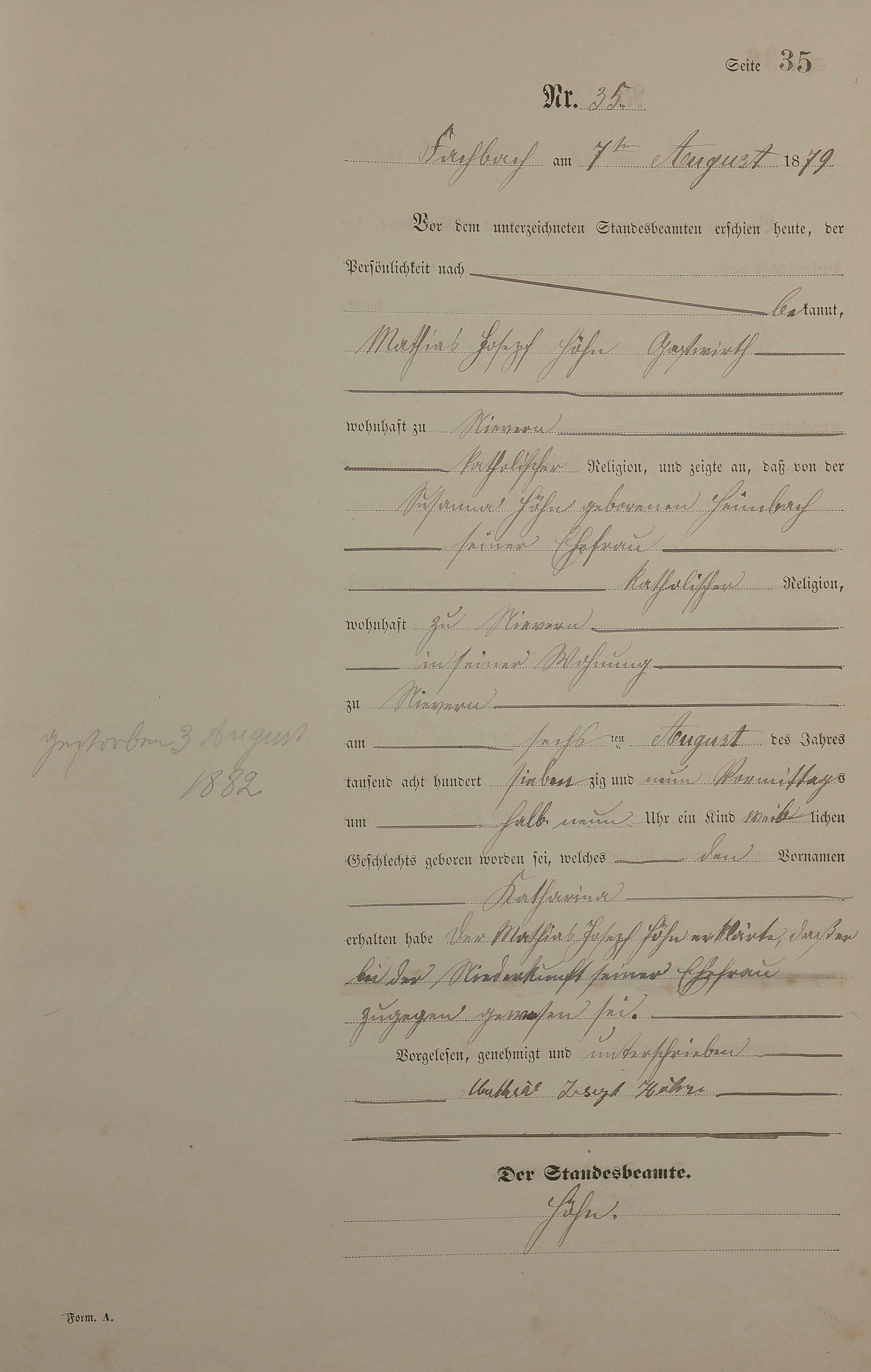 Geburtsregister 1879