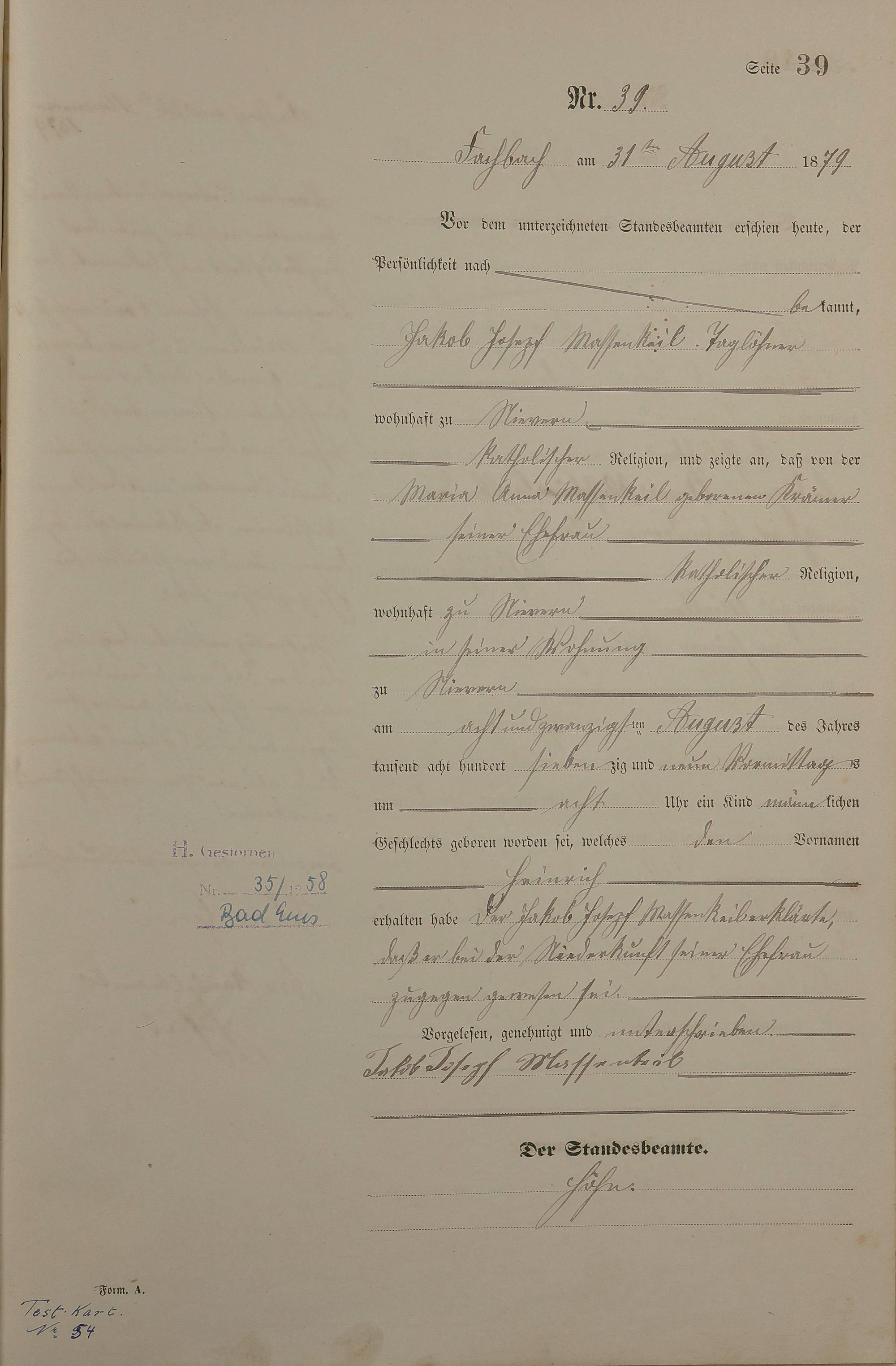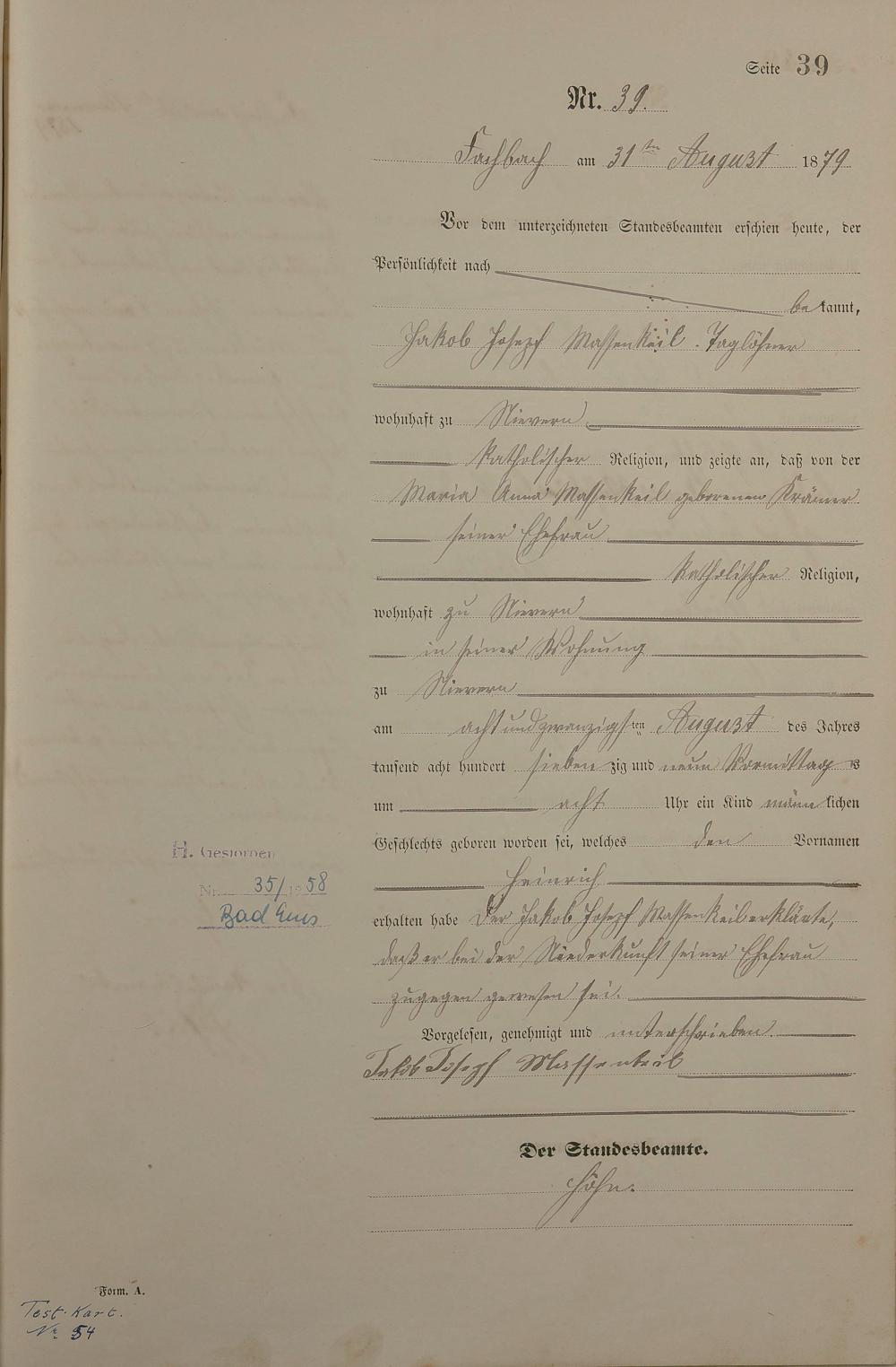 Geburtsregister 1879