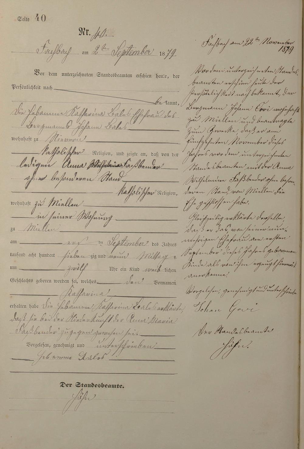 Geburtsregister 1879