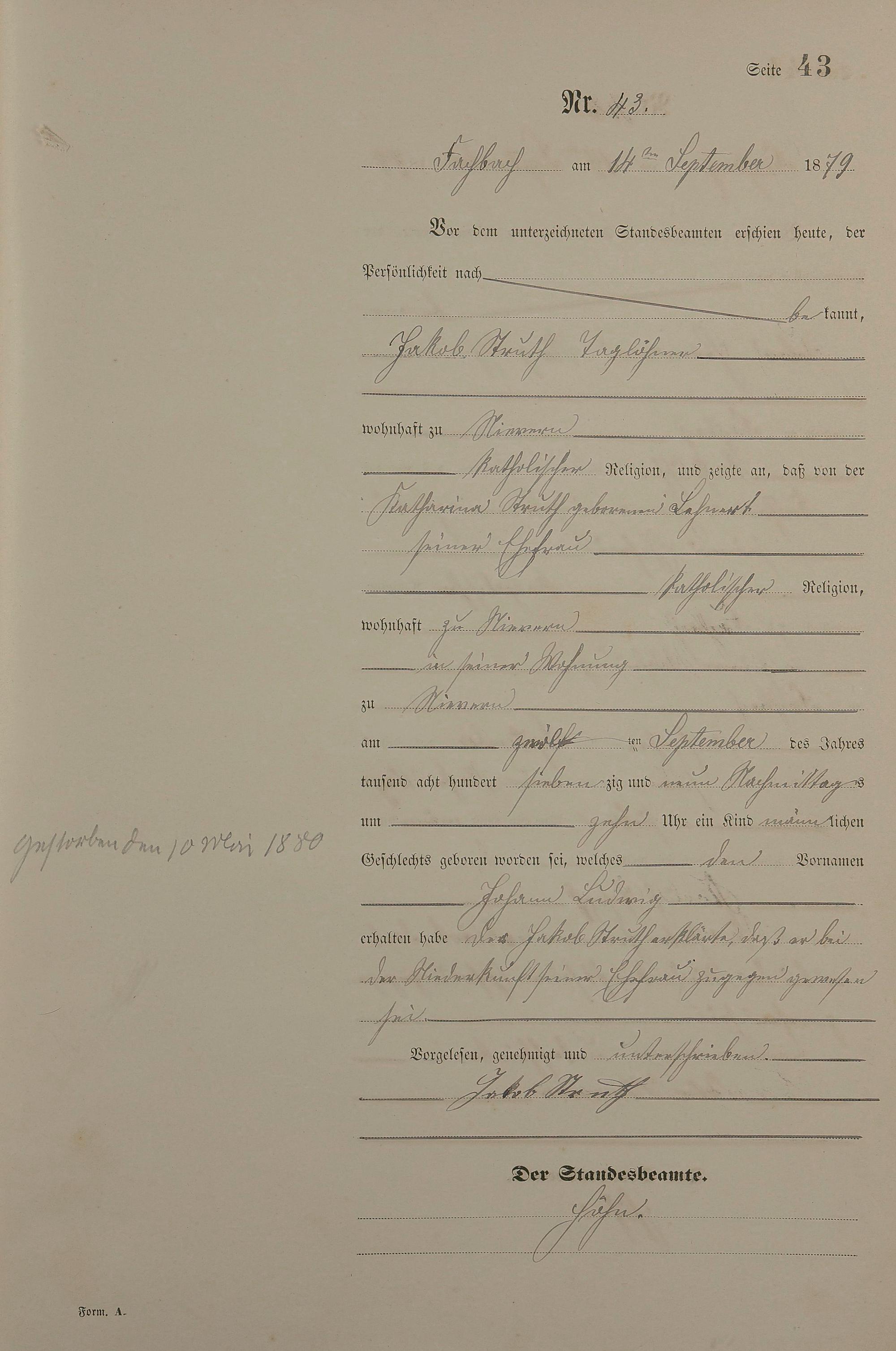 Geburtsregister 1879