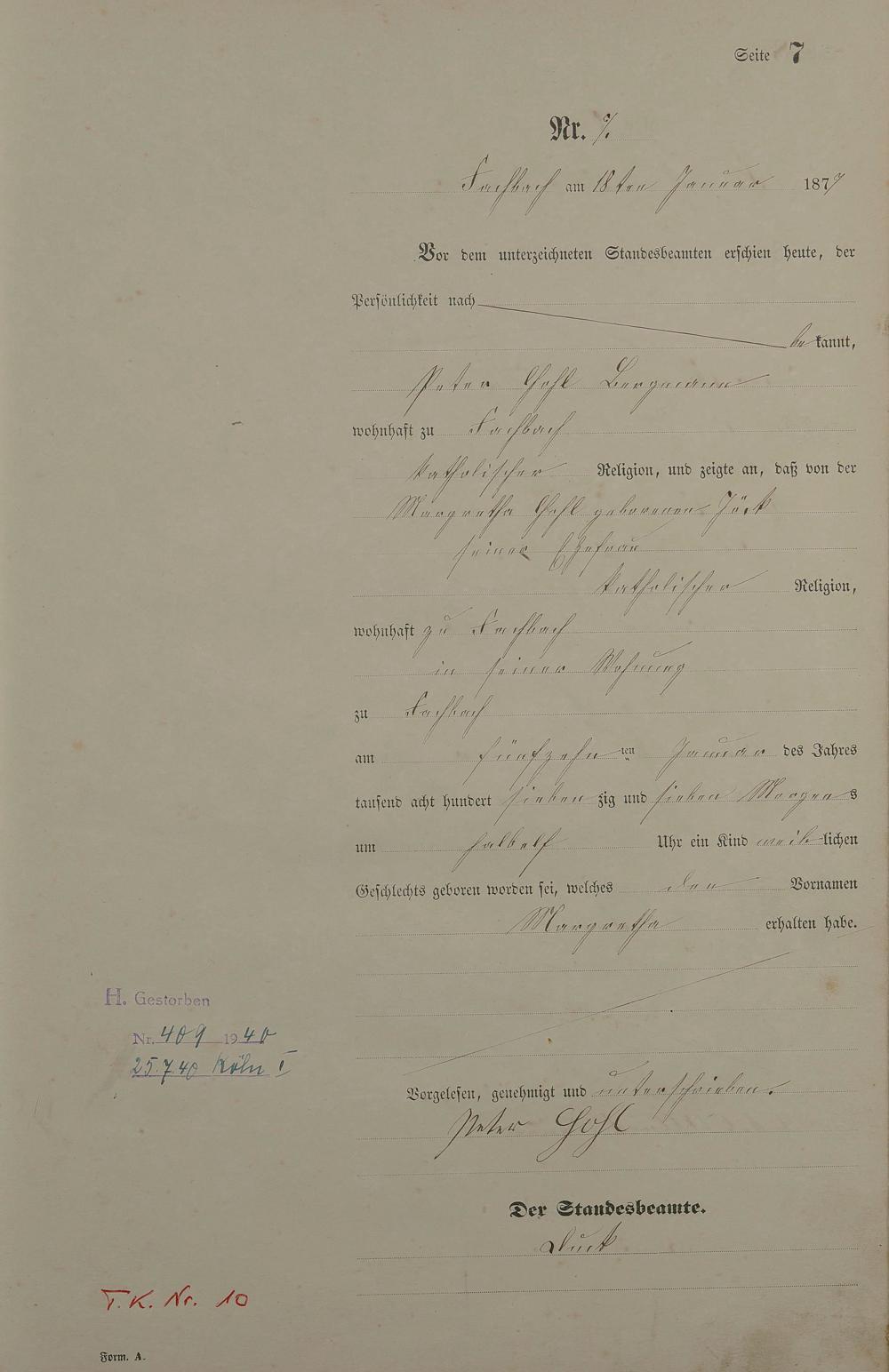 Geburtsregister 1877