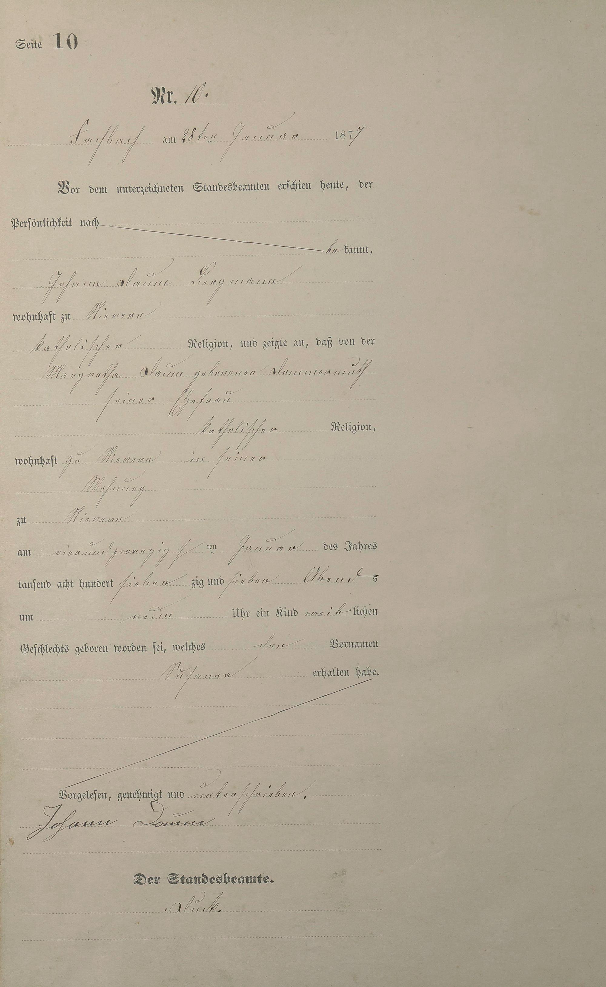 Geburtsregister 1877