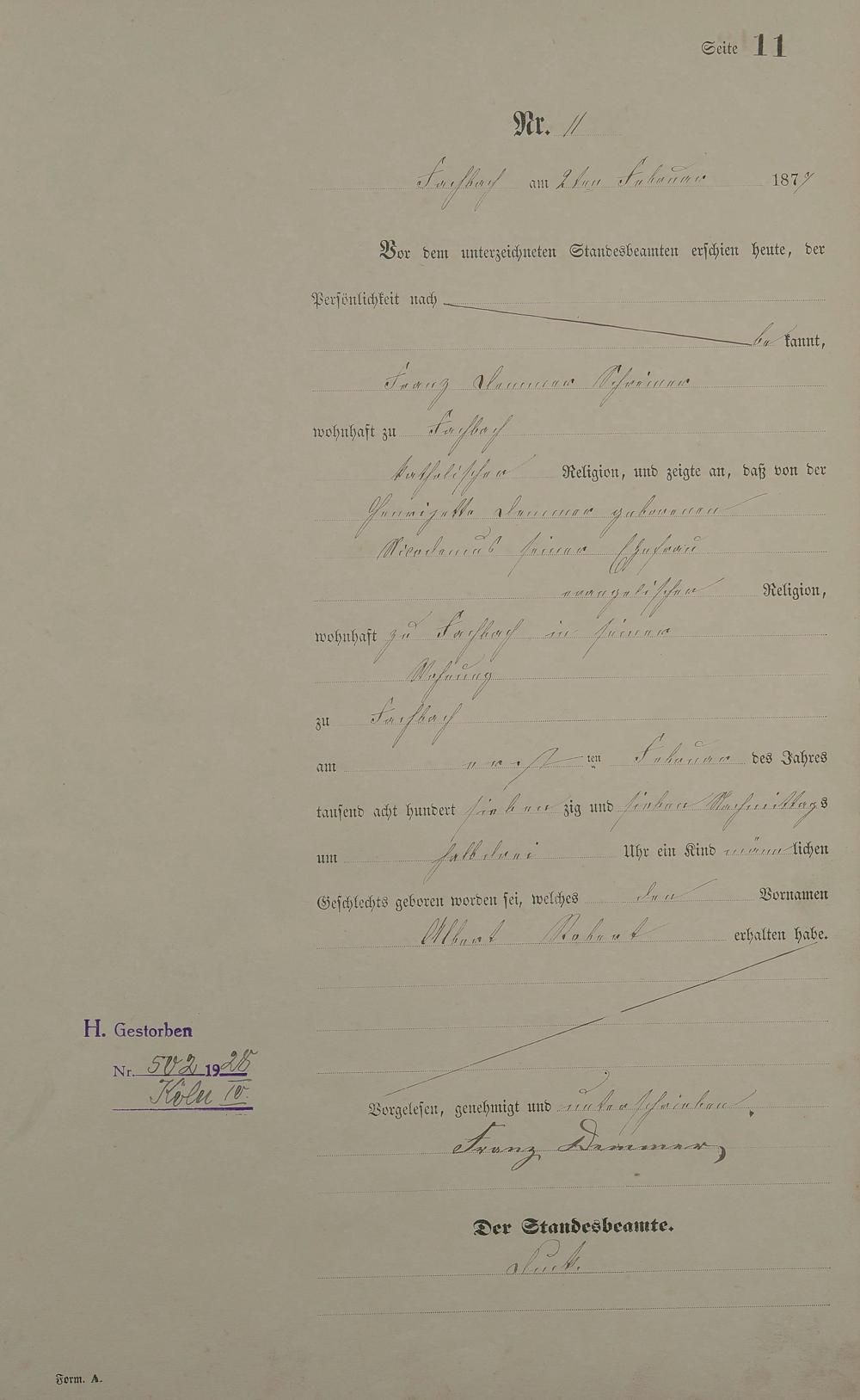 Geburtsregister 1877