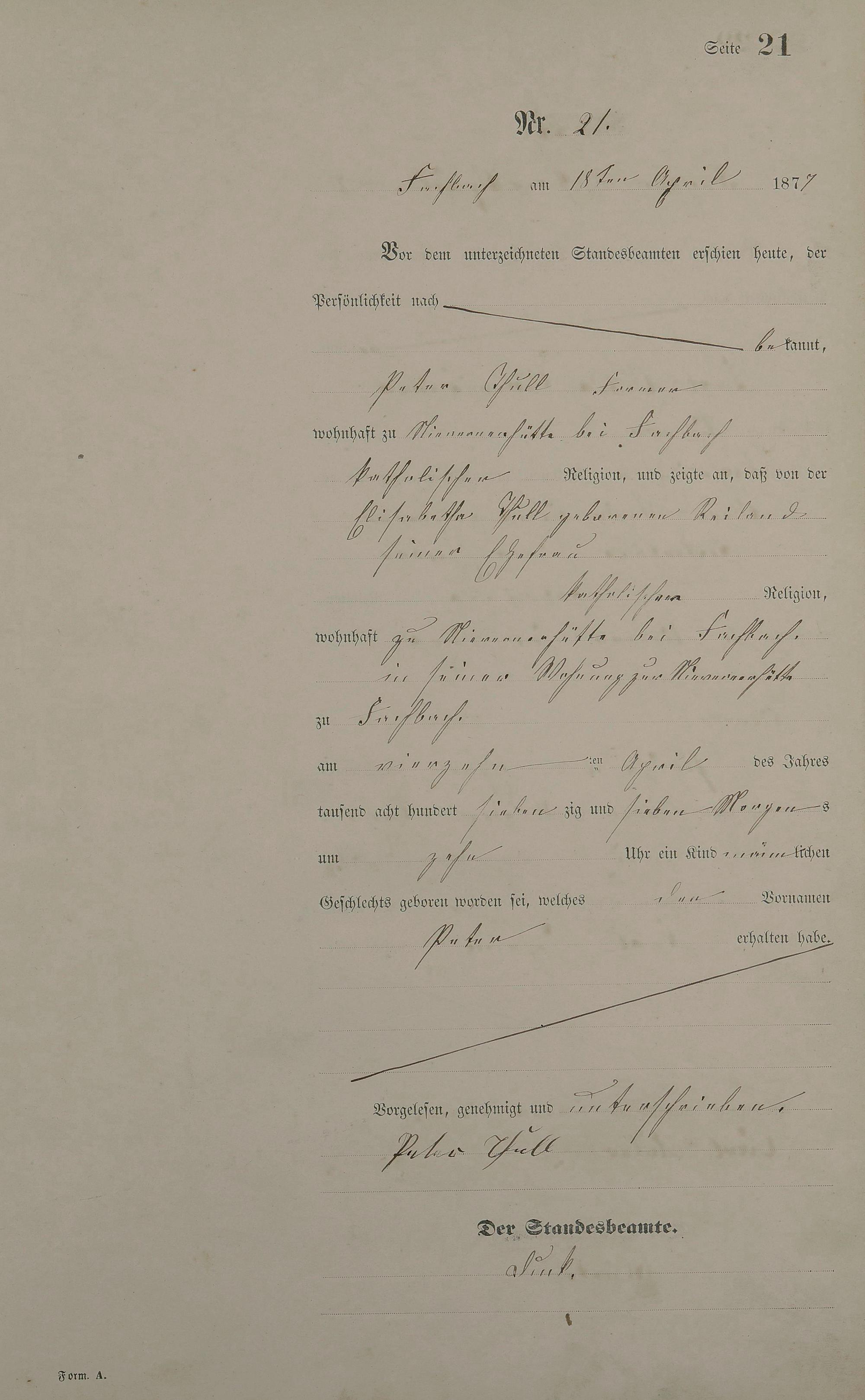 Geburtsregister 1877