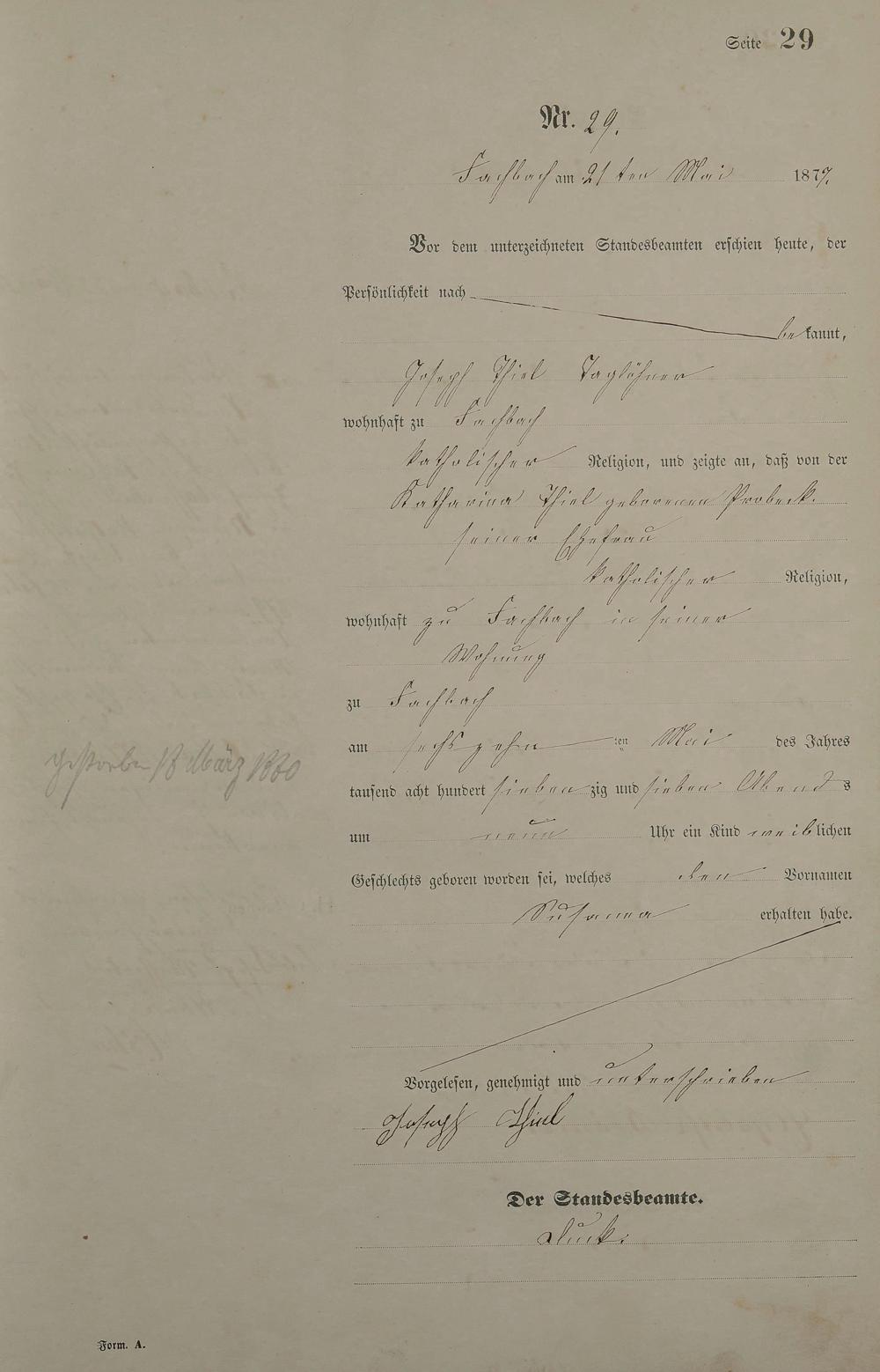 Geburtsregister 1877