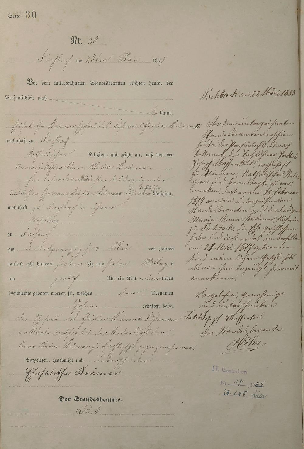 Geburtsregister 1877