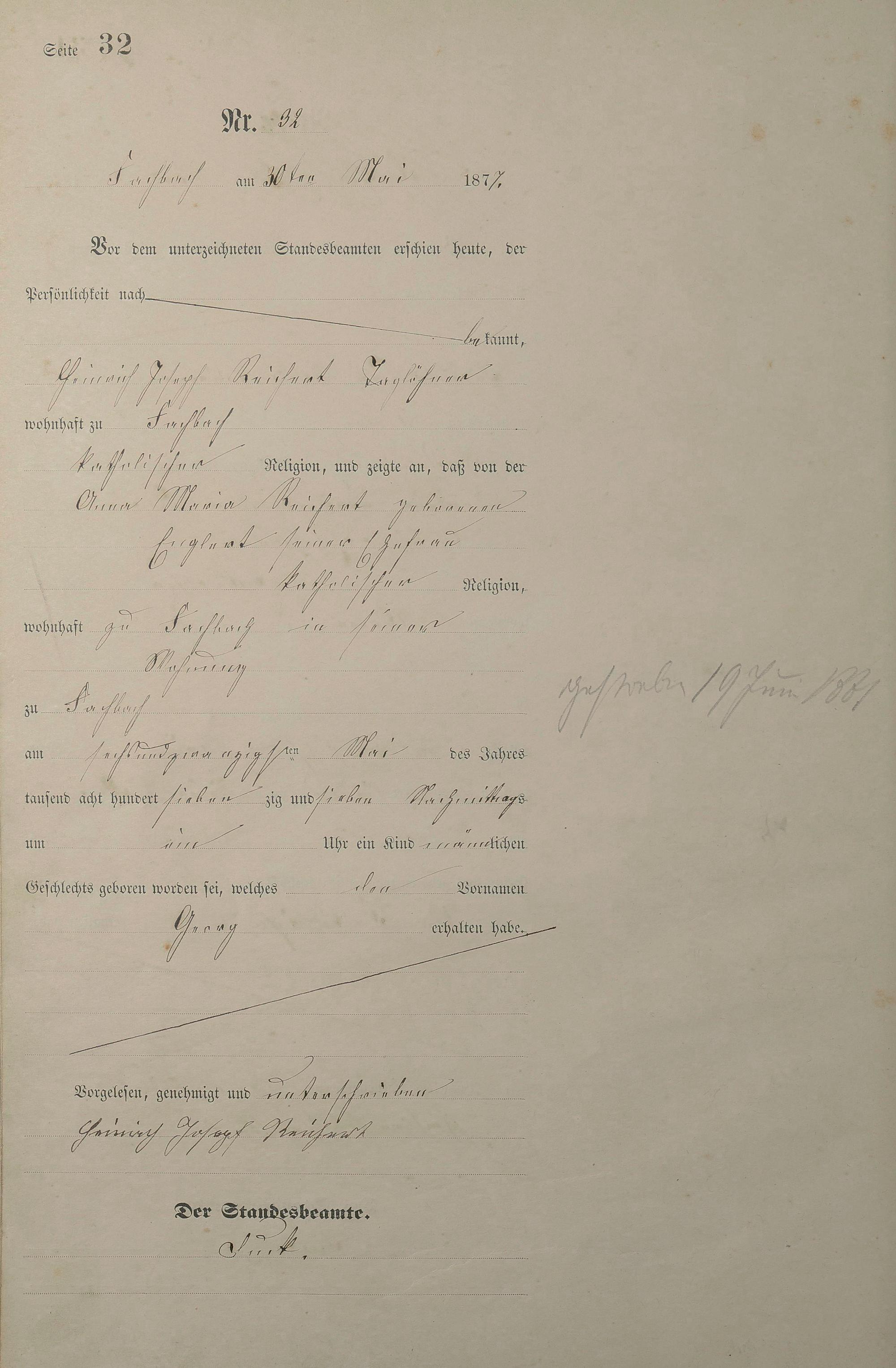 Geburtsregister 1877