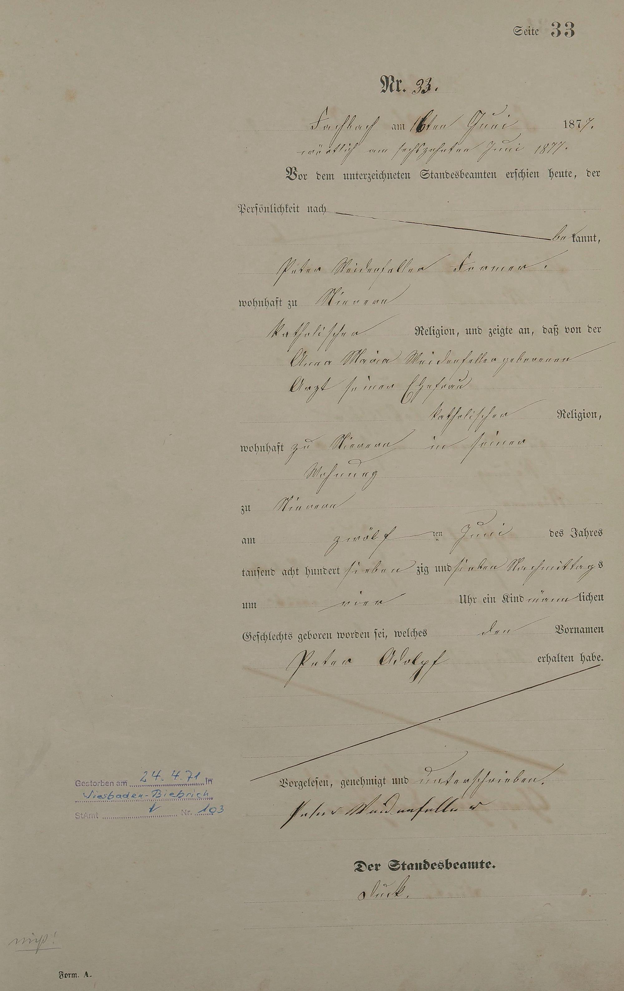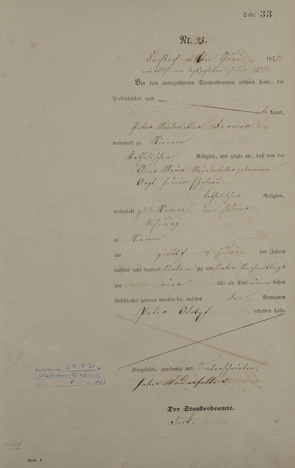 Geburtsregister 1877