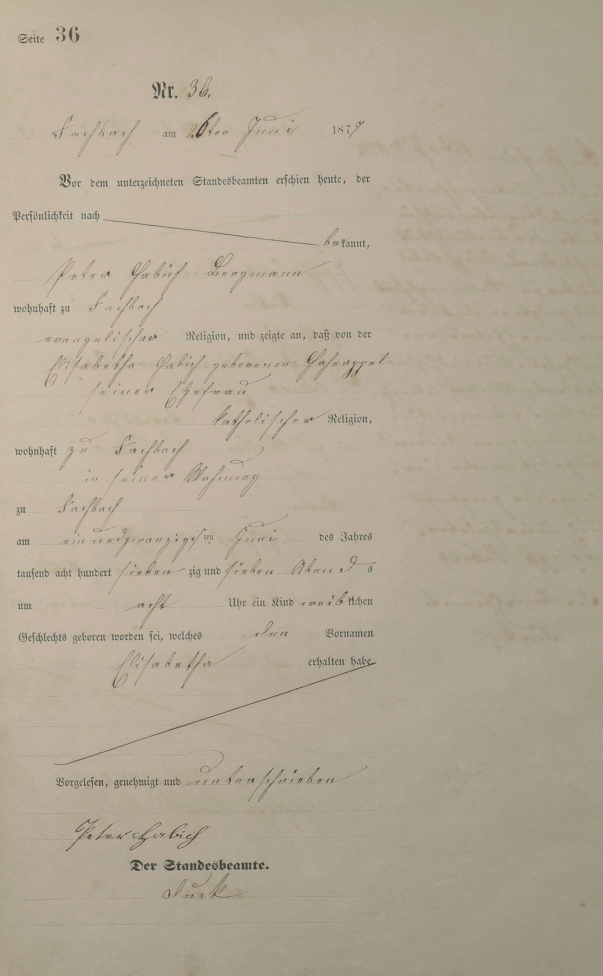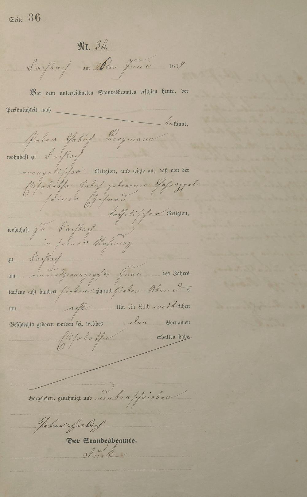 Geburtsregister 1877