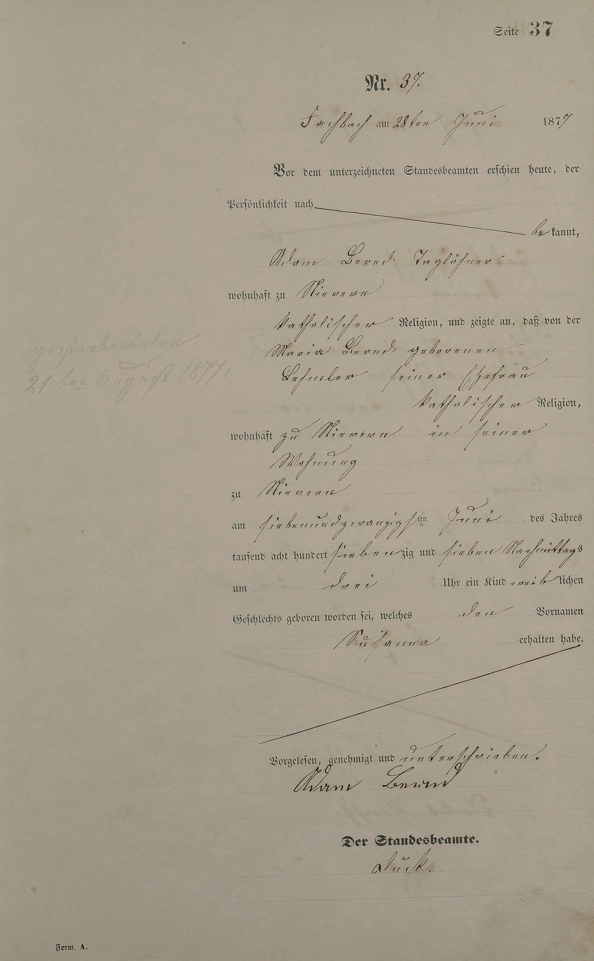 Geburtsregister 1877