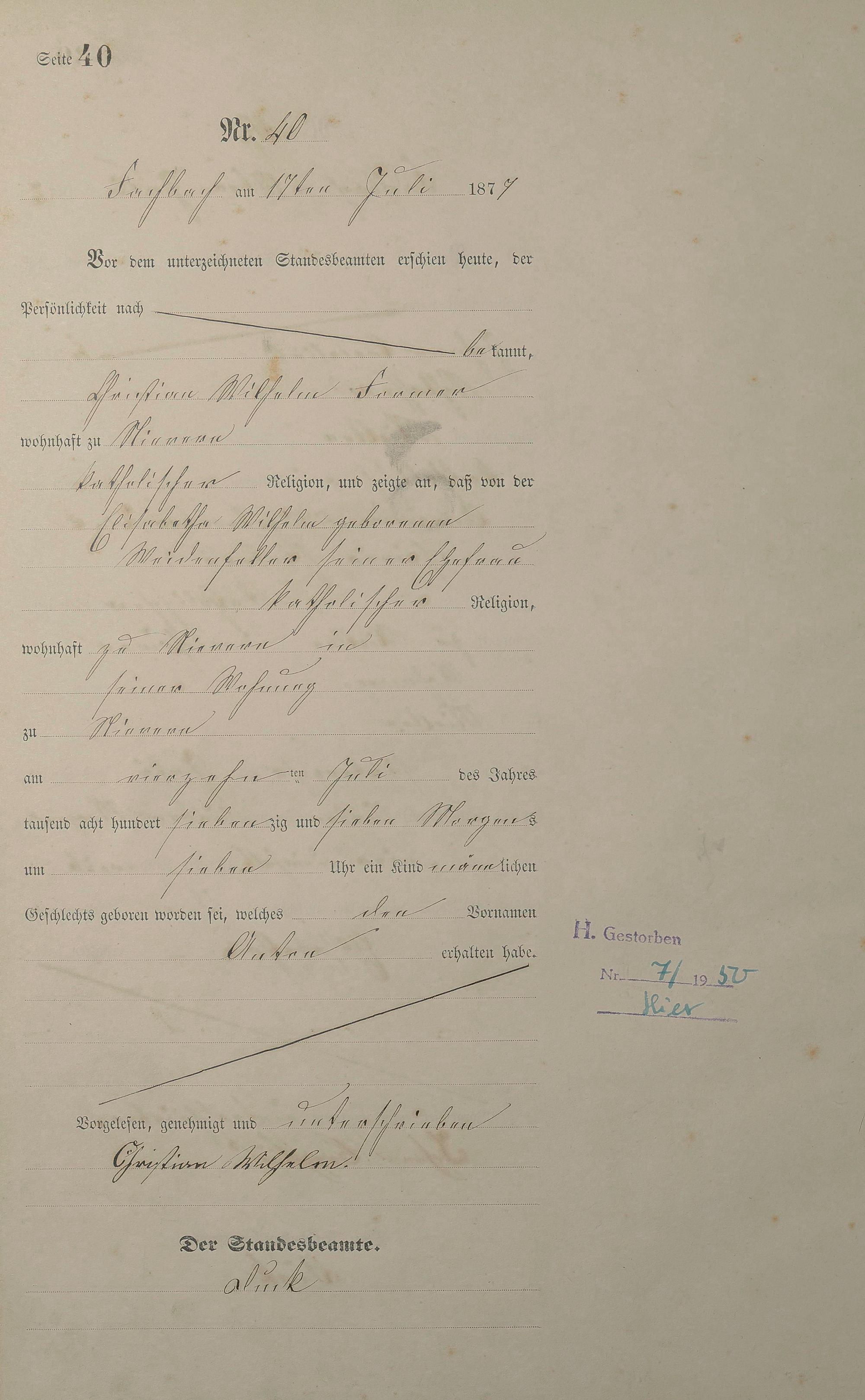 Geburtsregister 1877