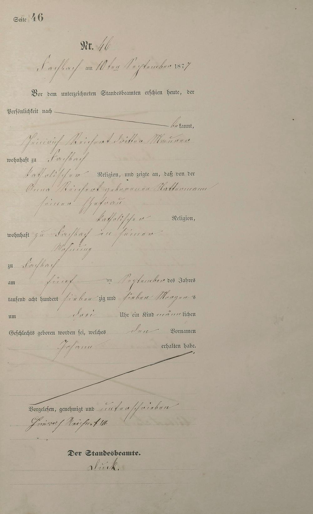 Geburtsregister 1877