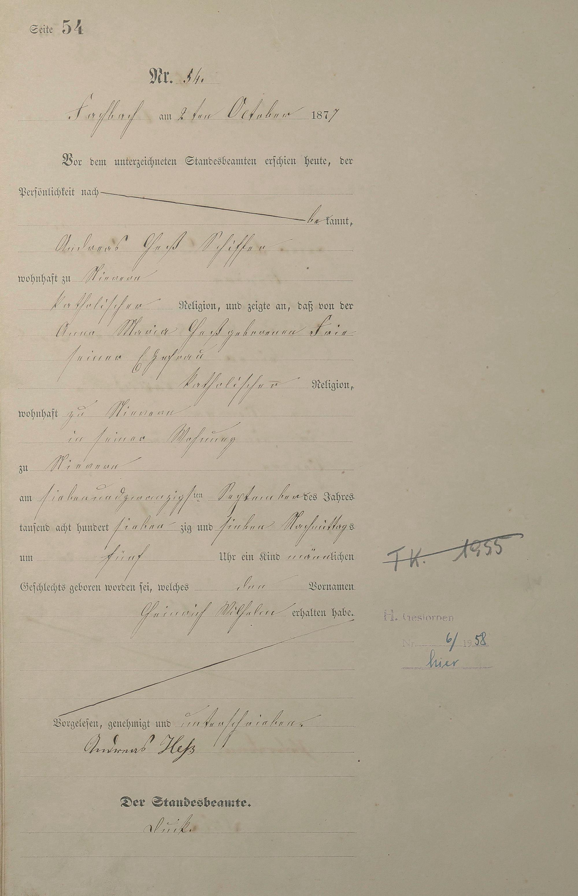 Geburtsregister 1877