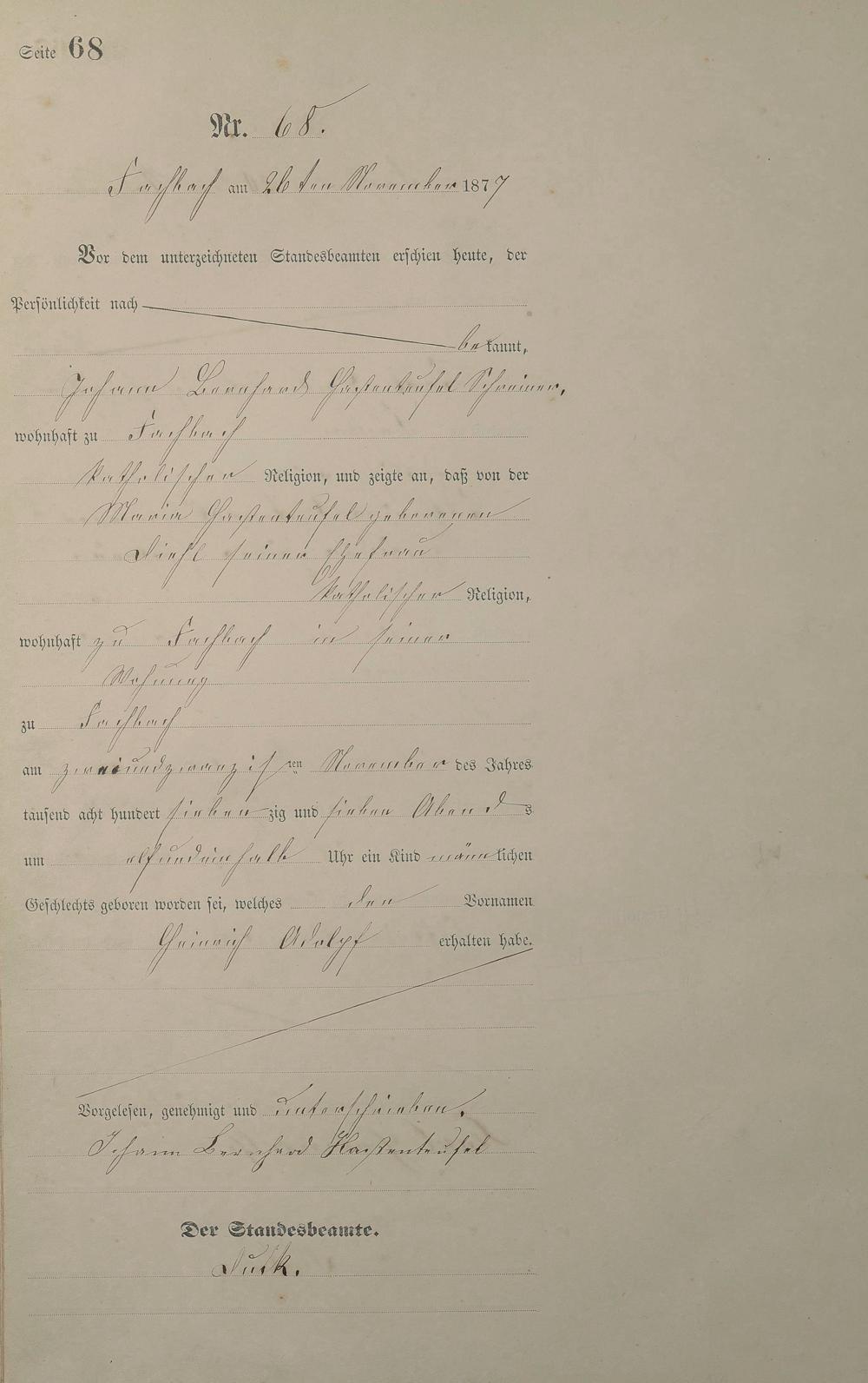Geburtsregister 1877