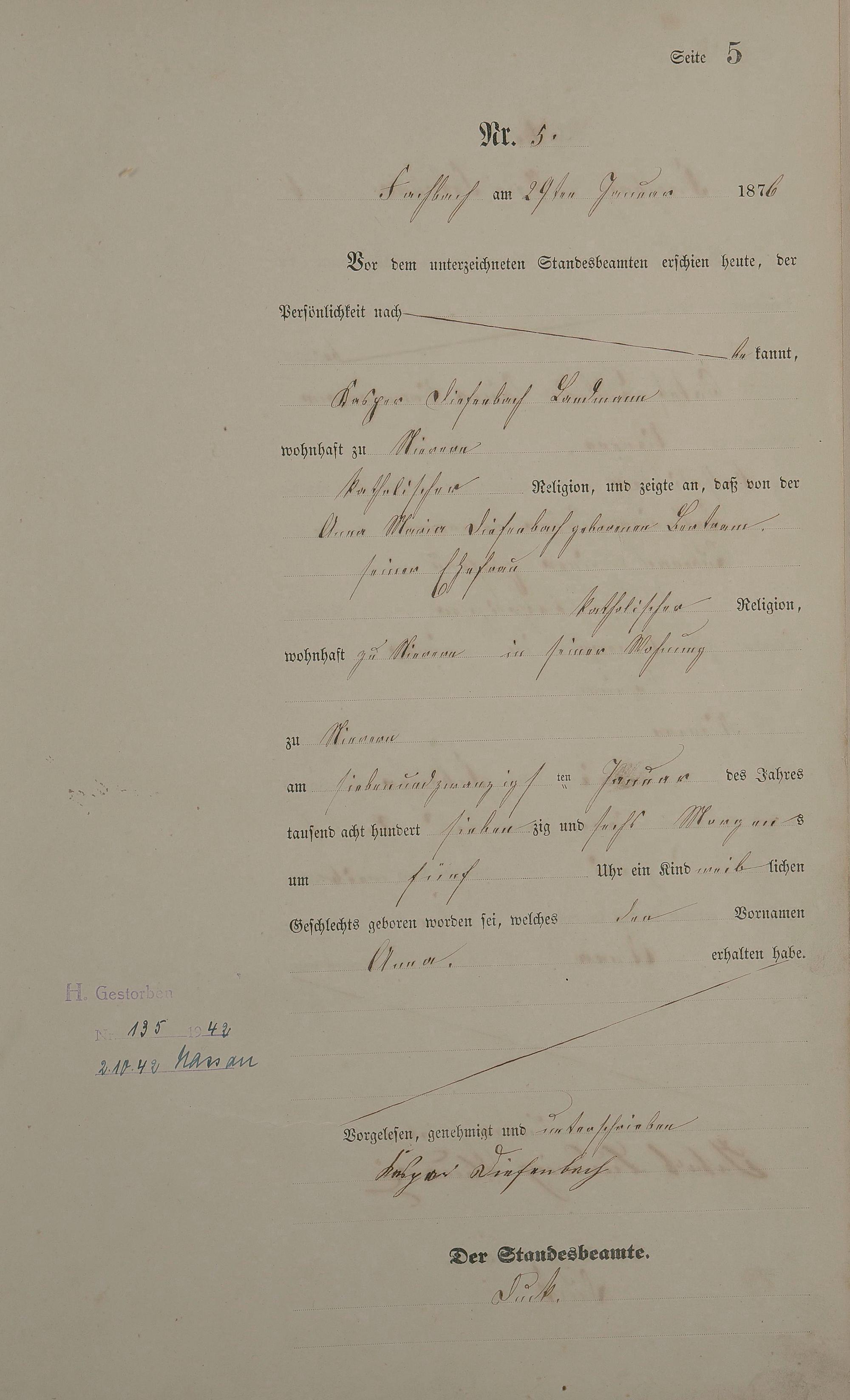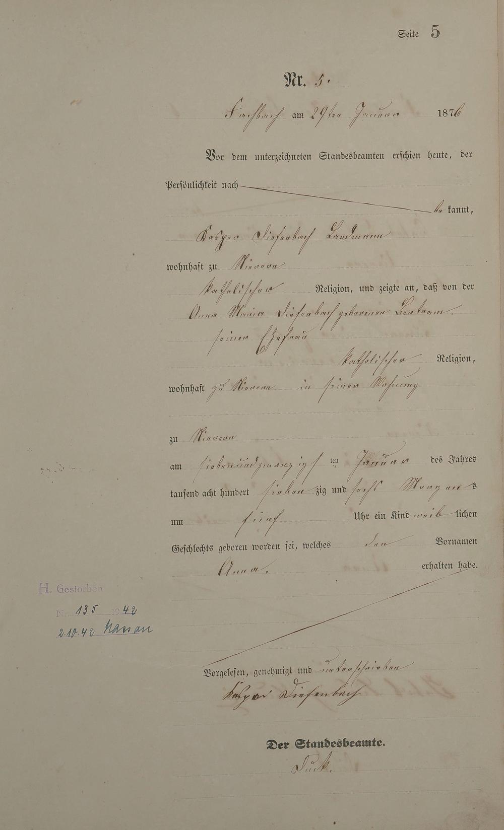 Geburtsregister 1876