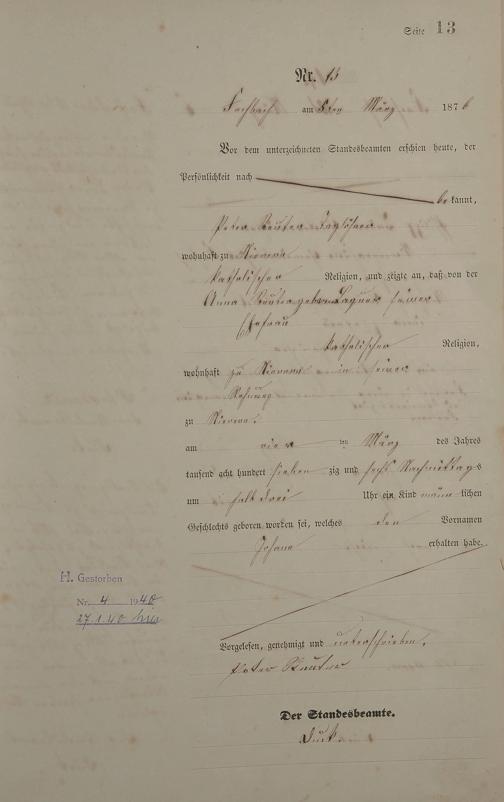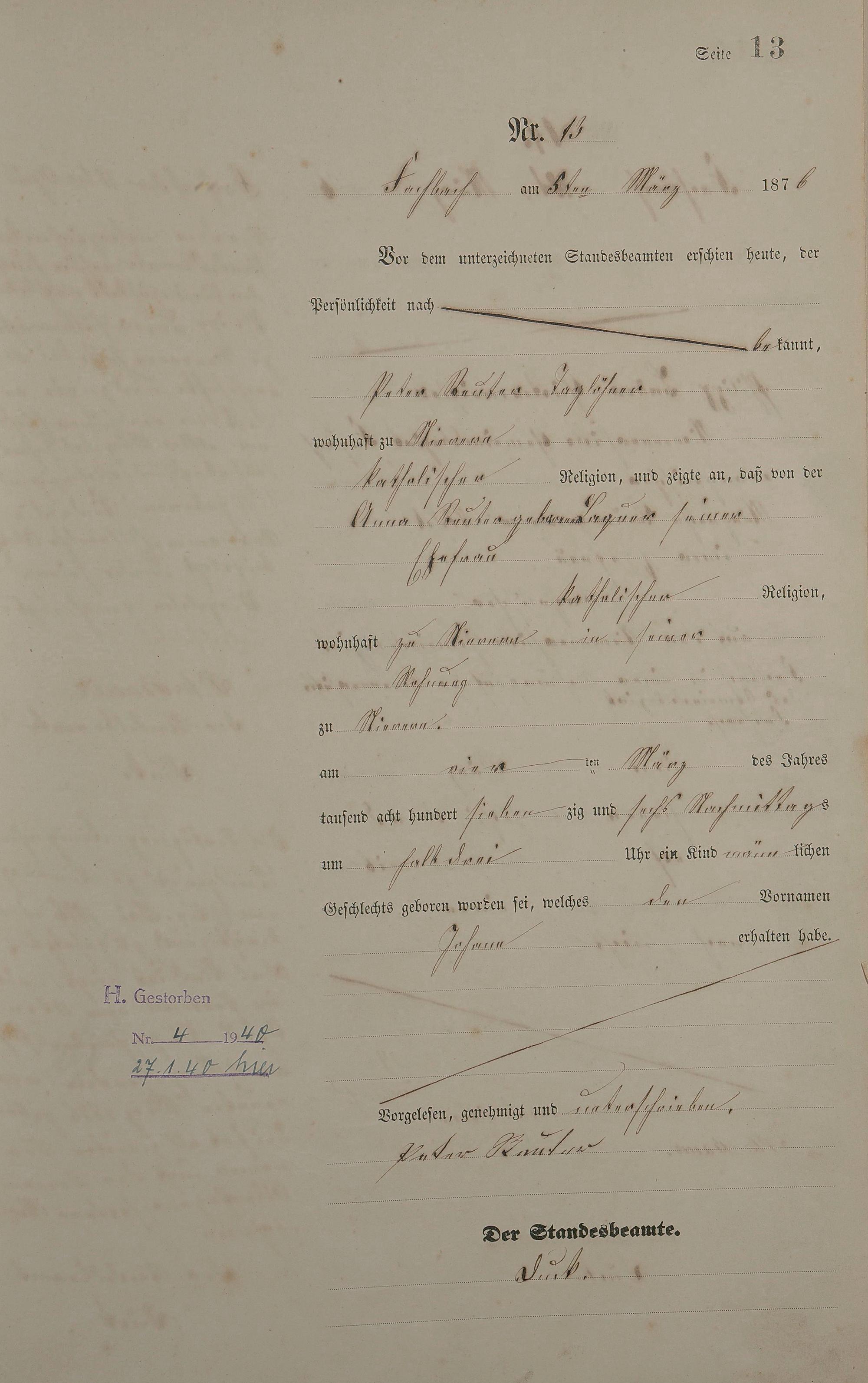Geburtsregister 1876