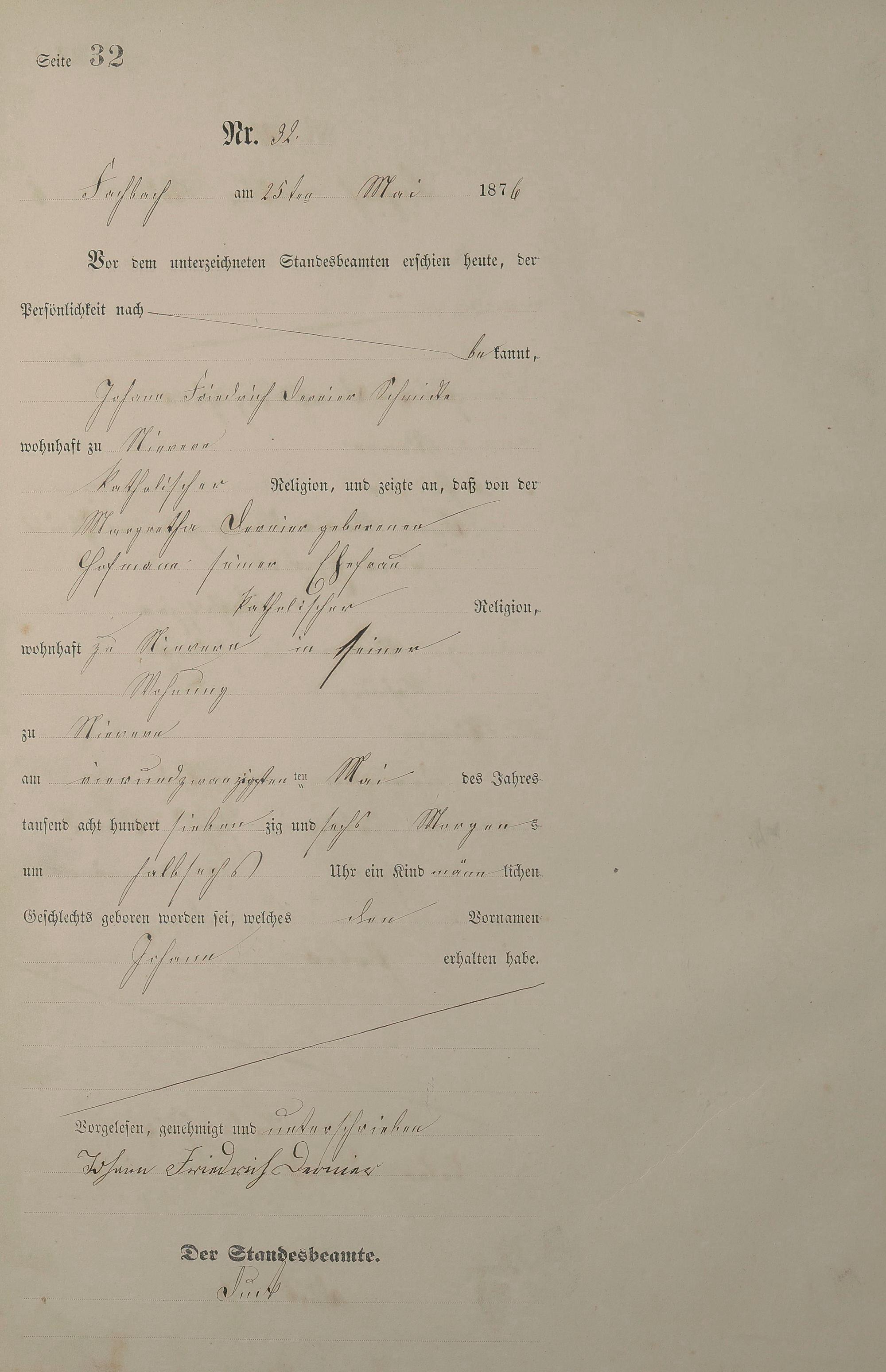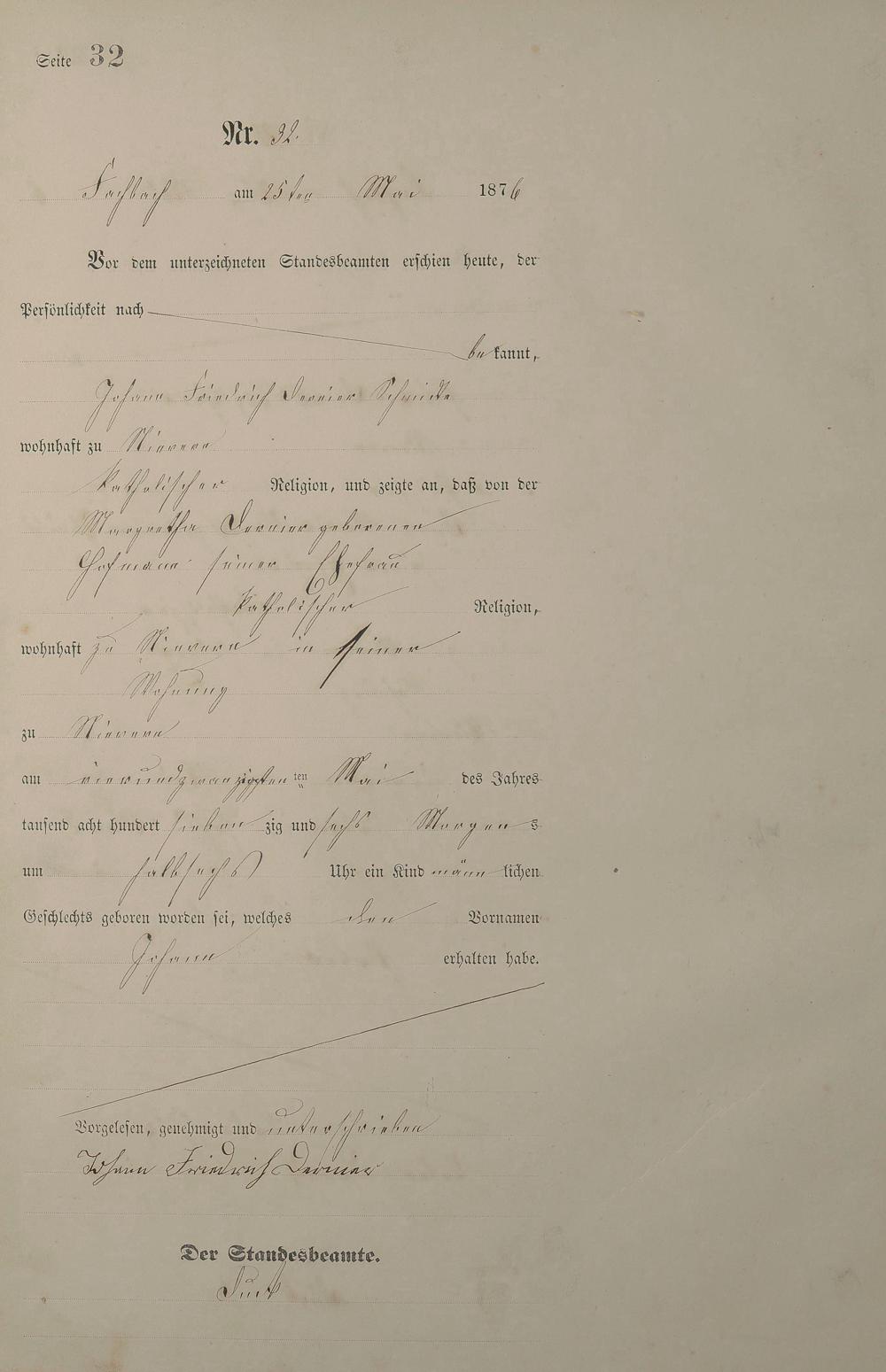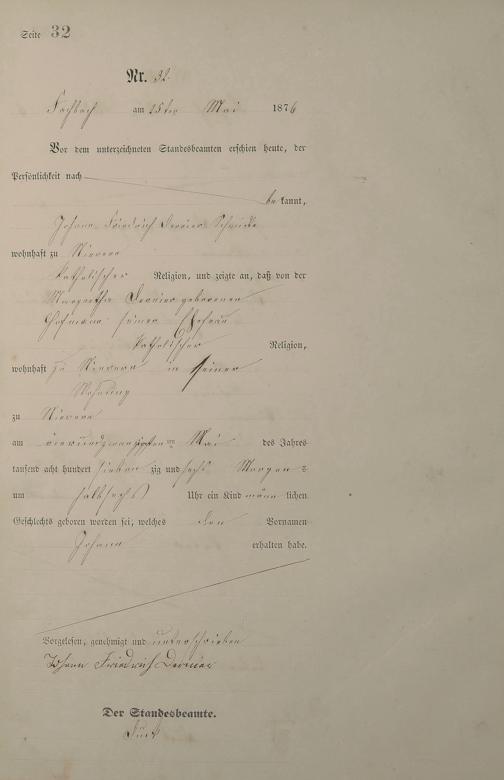 Geburtsregister 1876