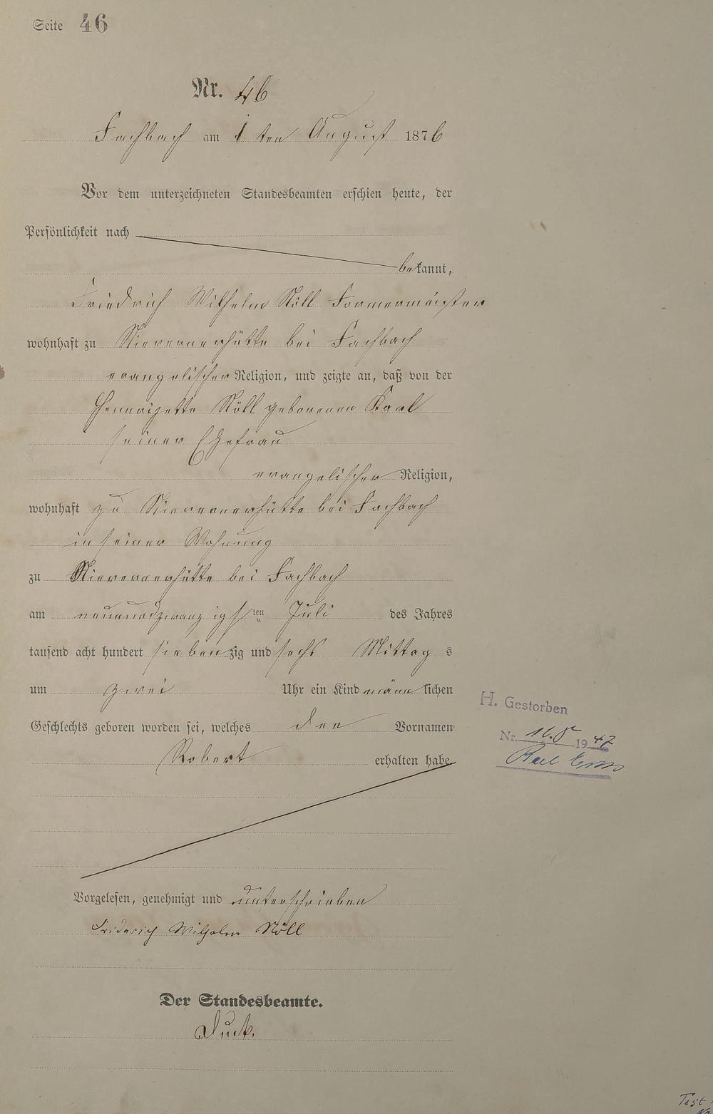 Geburtsregister 1876