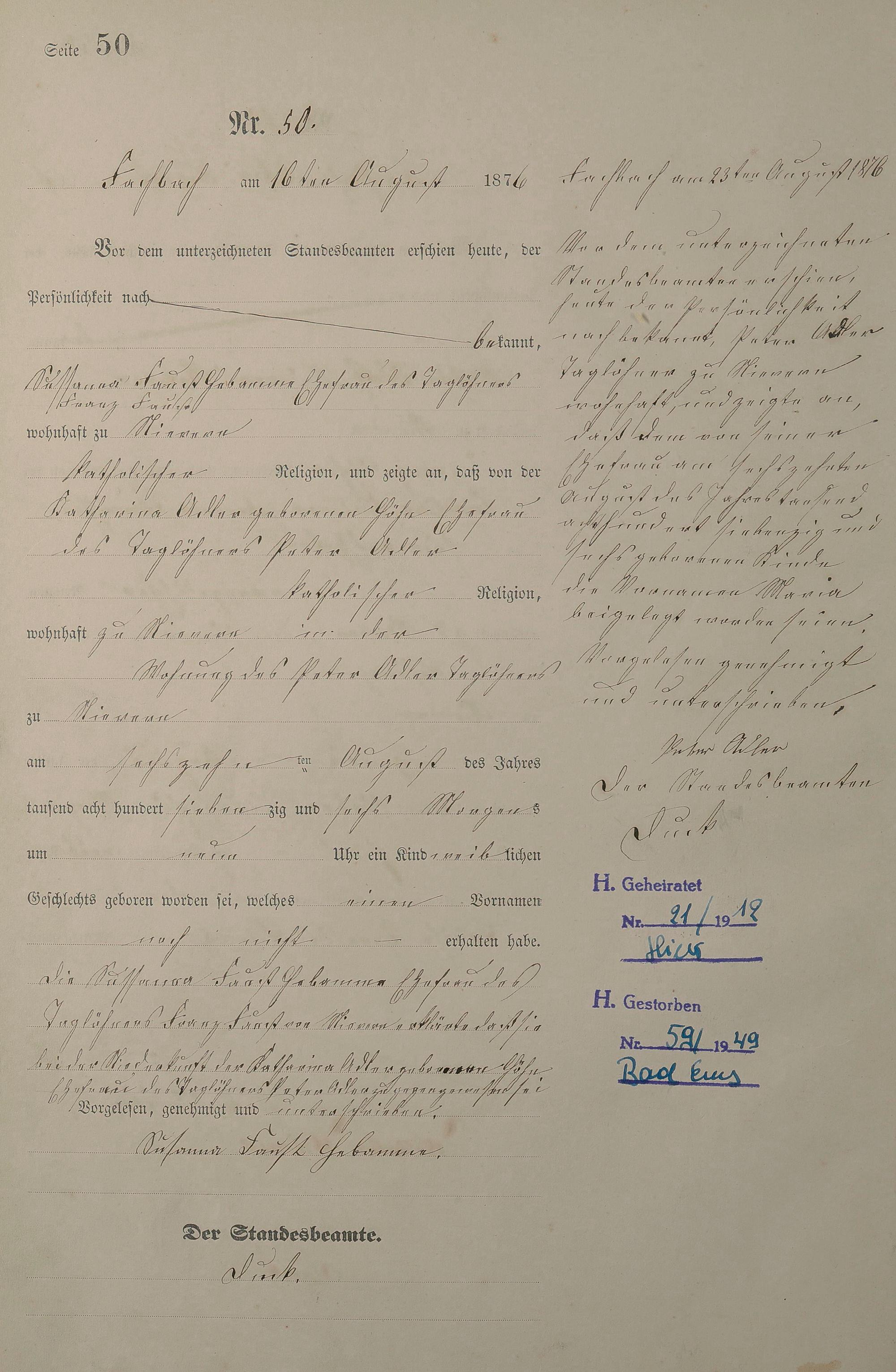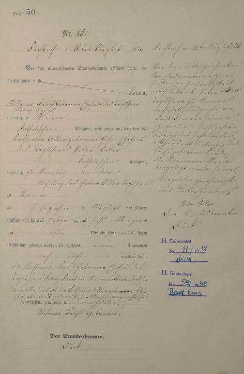 Geburtsregister 1876