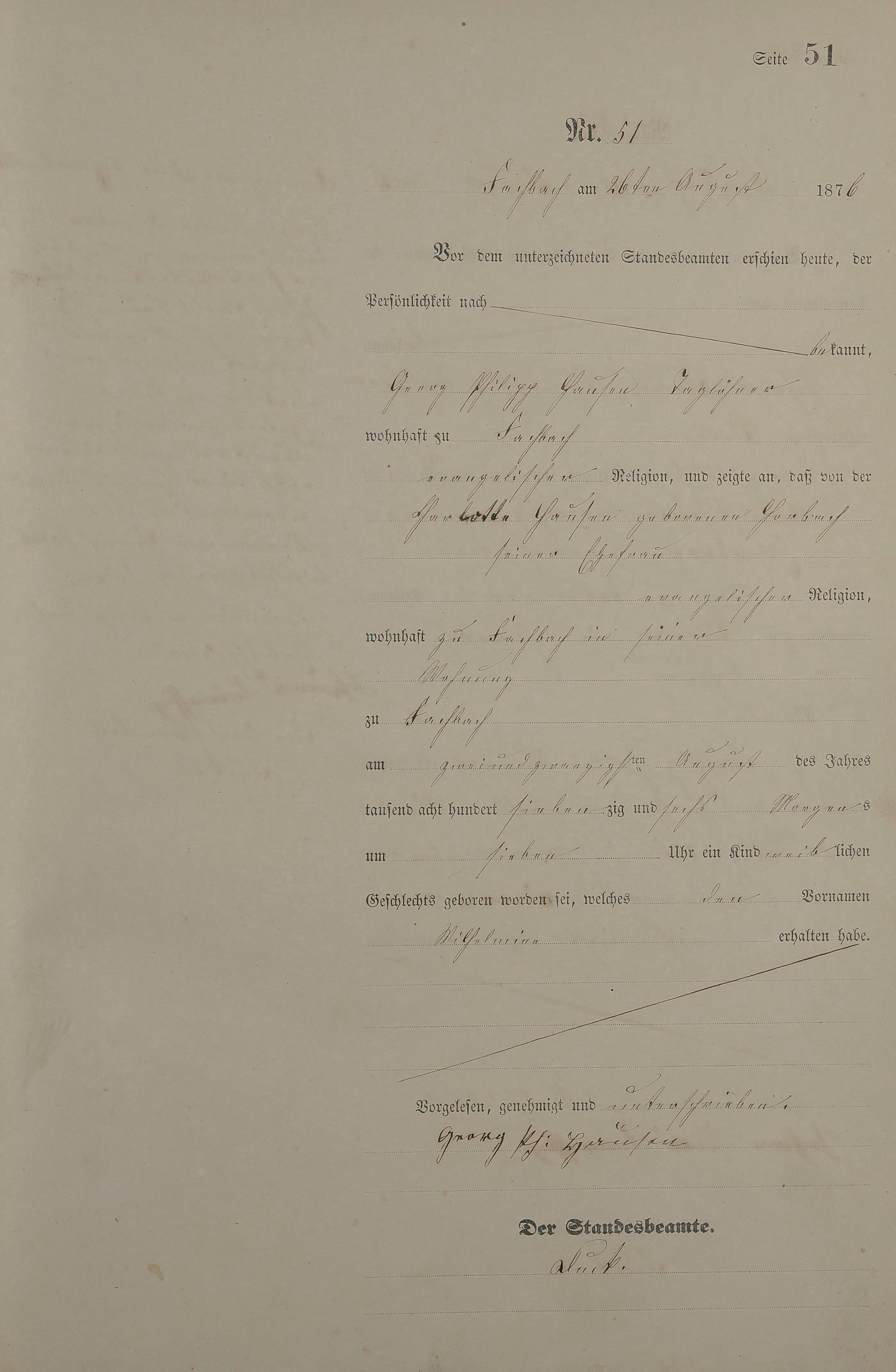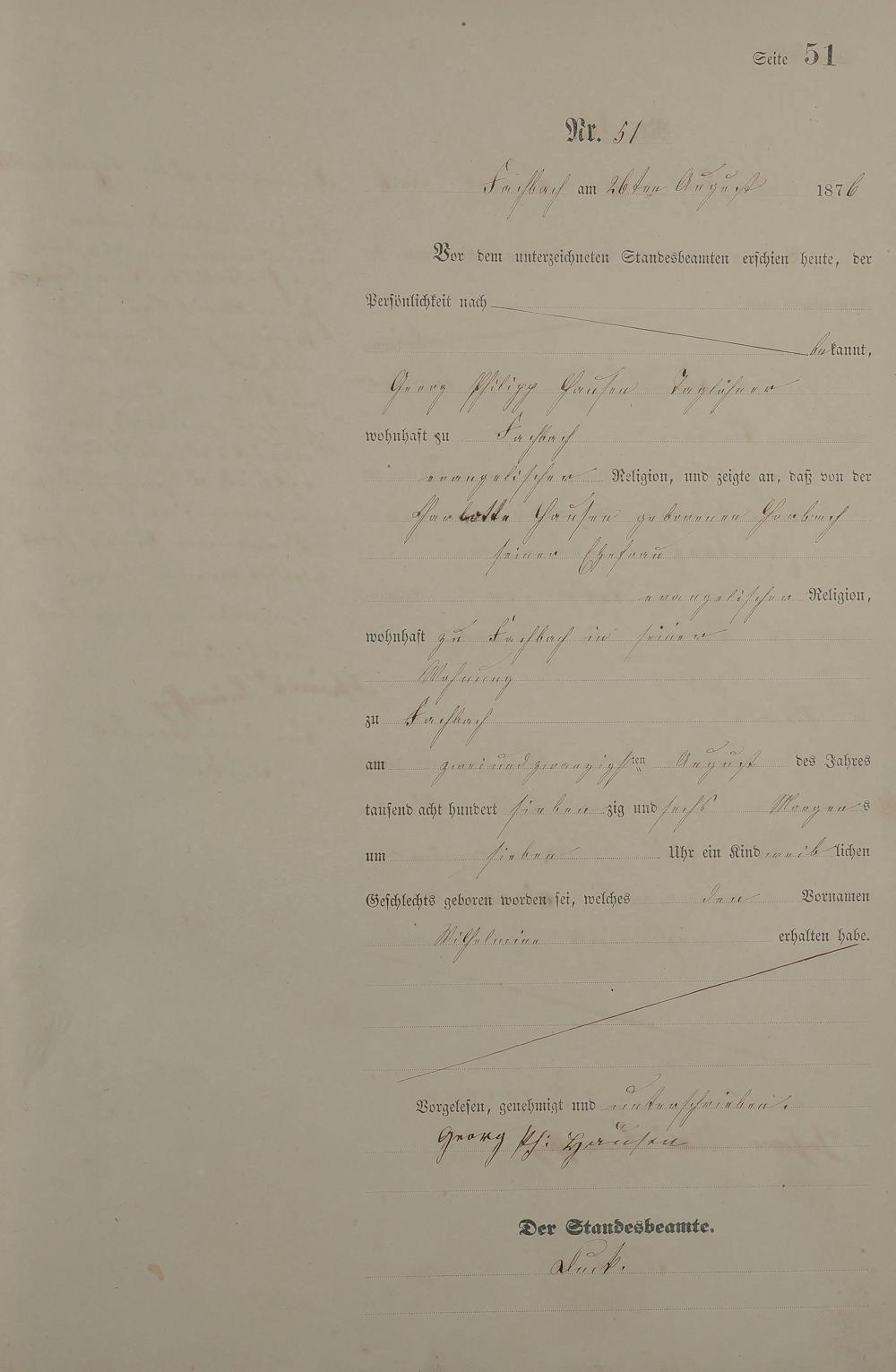Geburtsregister 1876