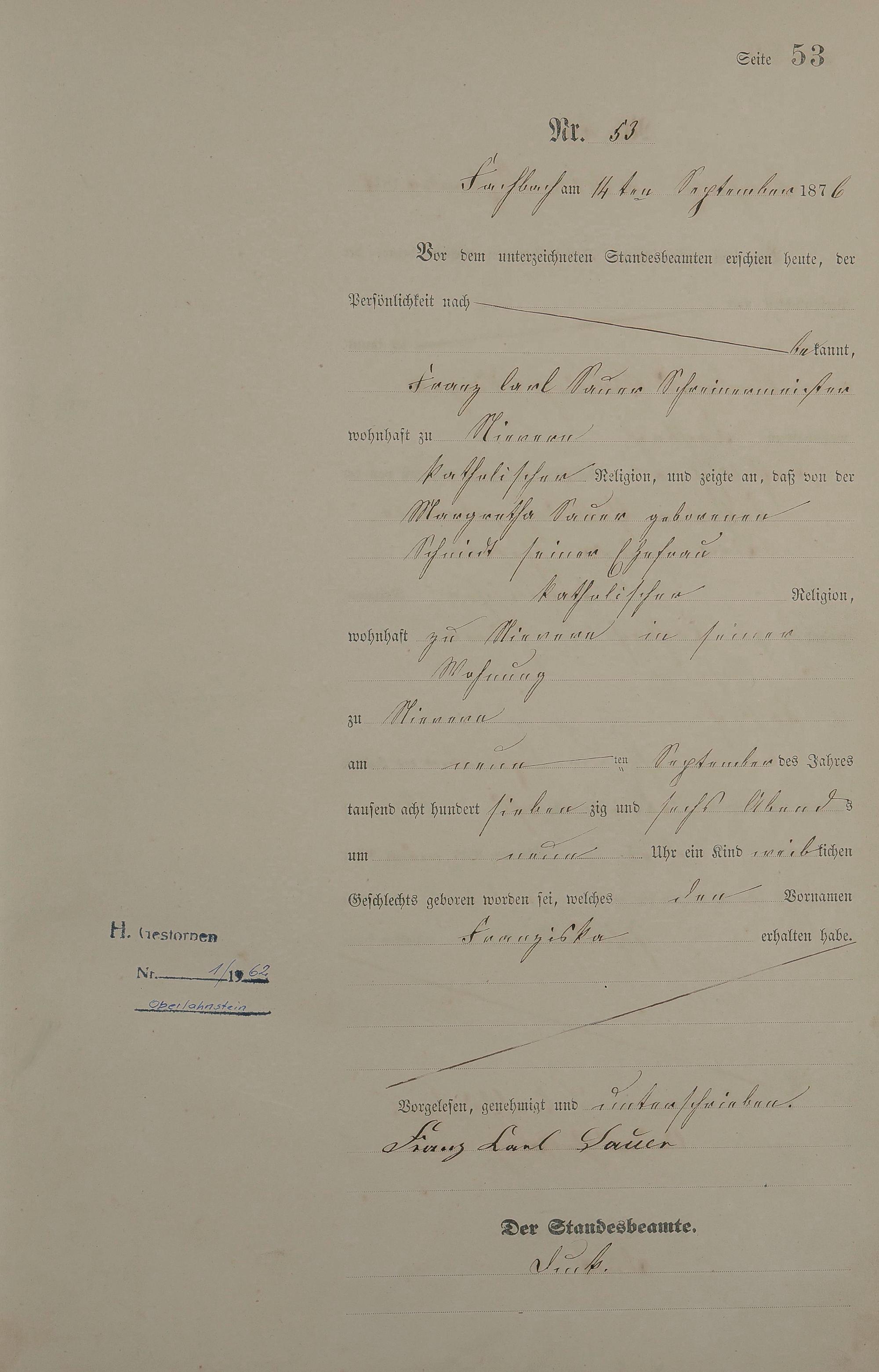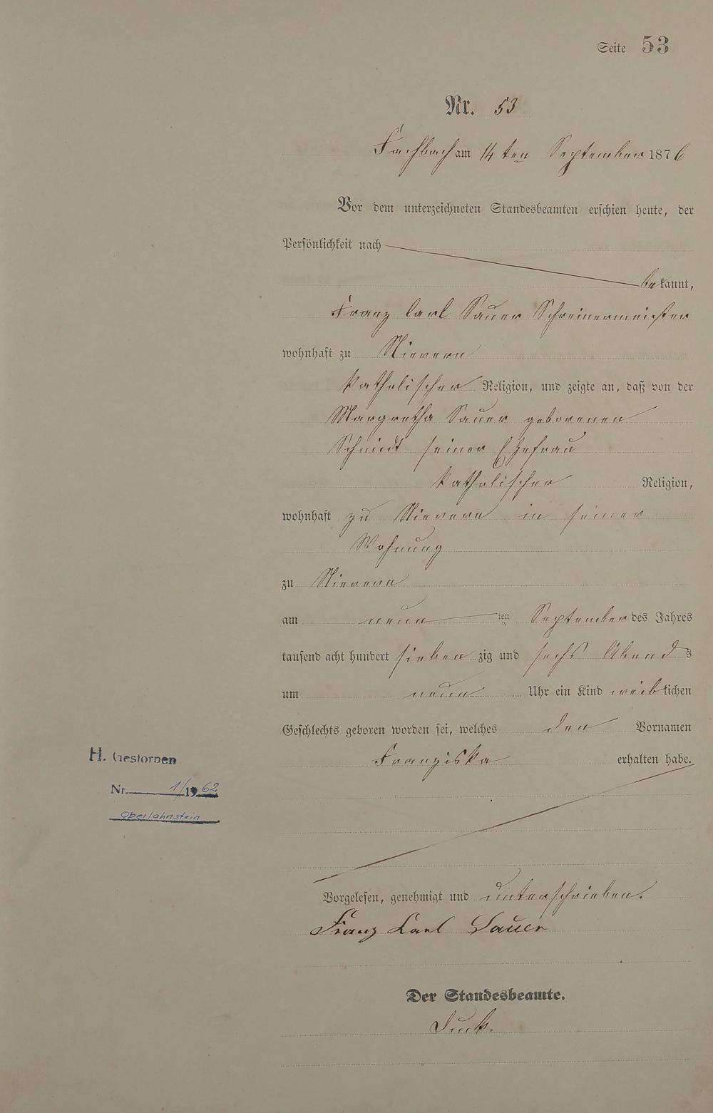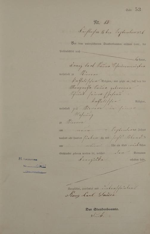 Geburtsregister 1876