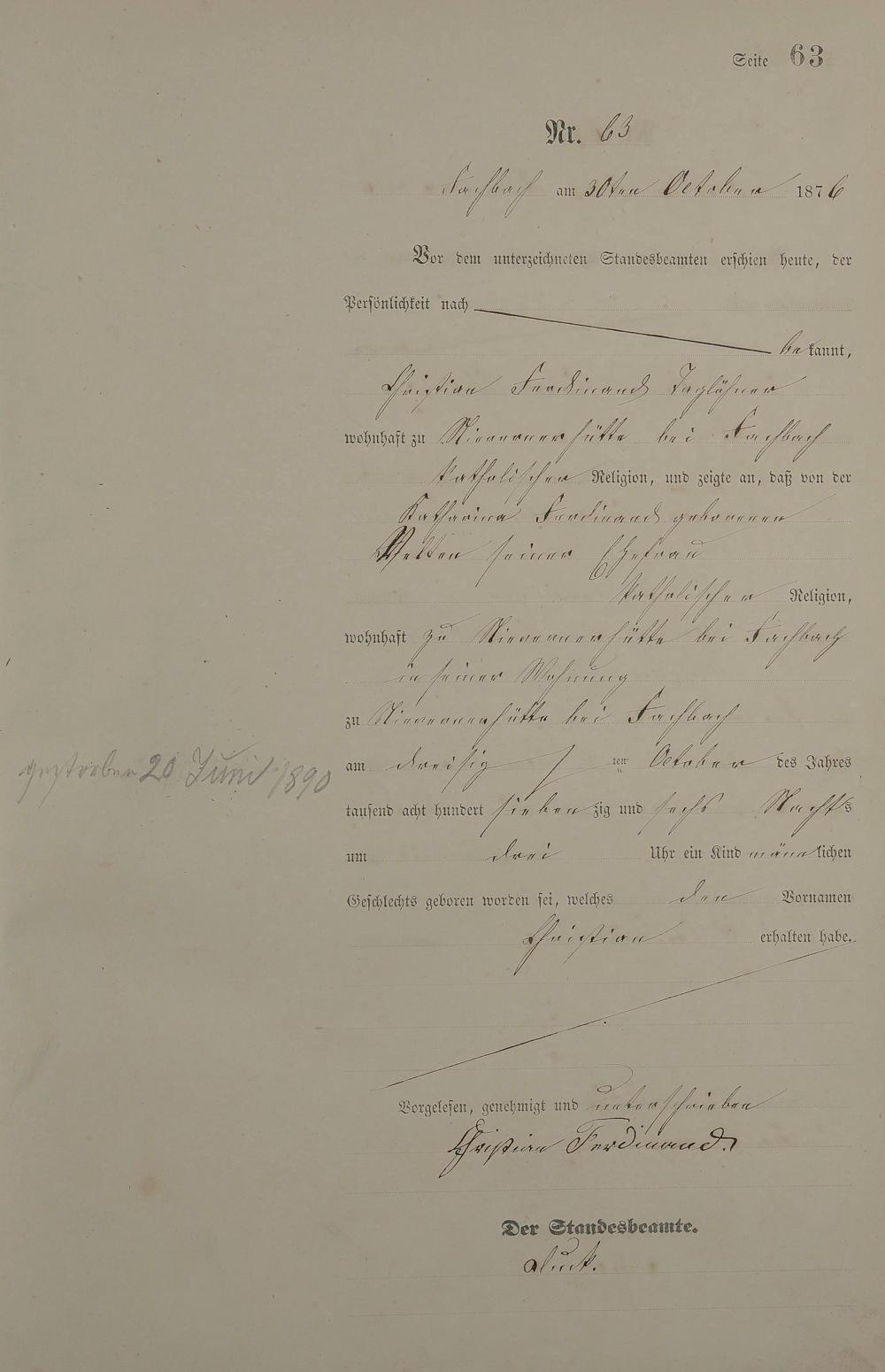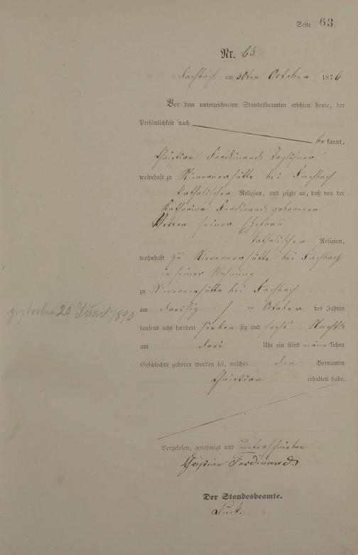 Geburtsregister 1876