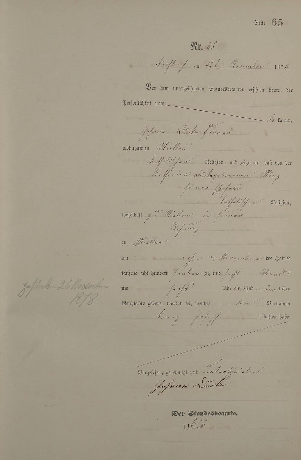 Geburtsregister 1876