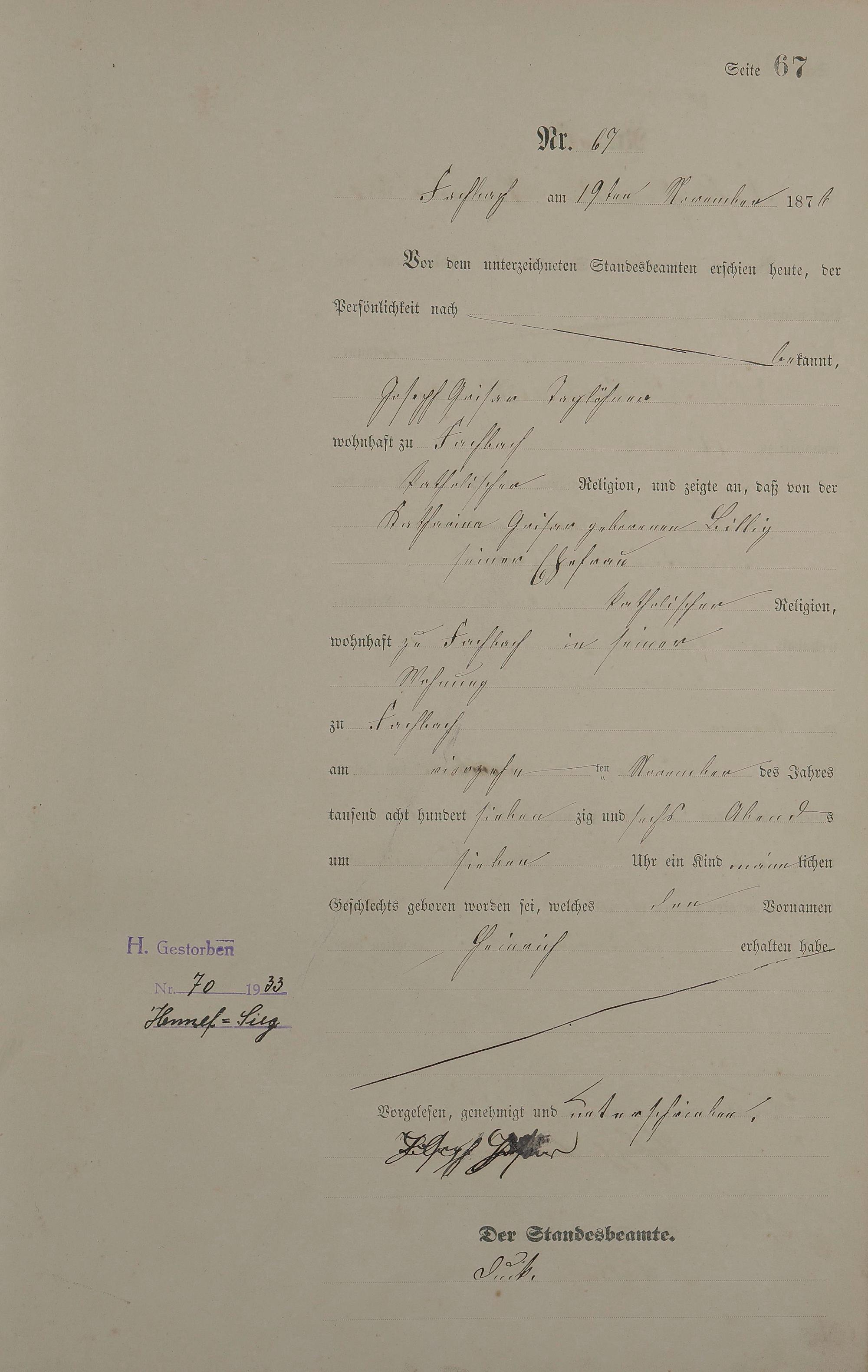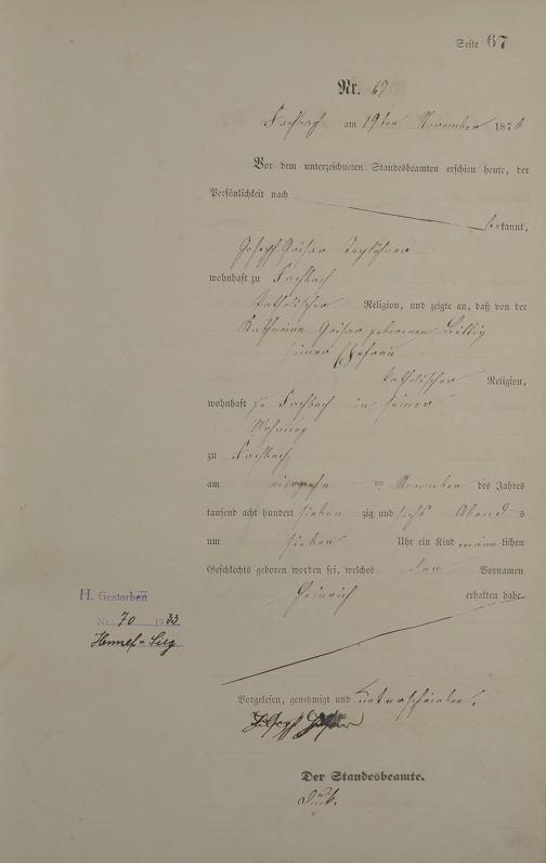 Geburtsregister 1876