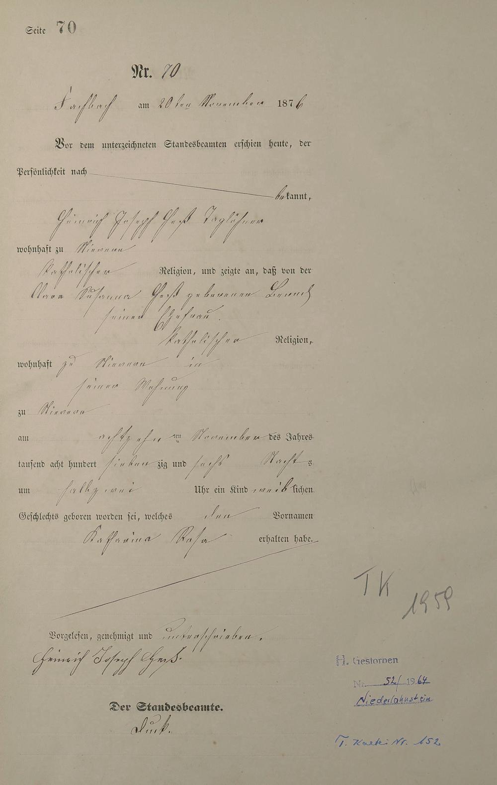 Geburtsregister 1876