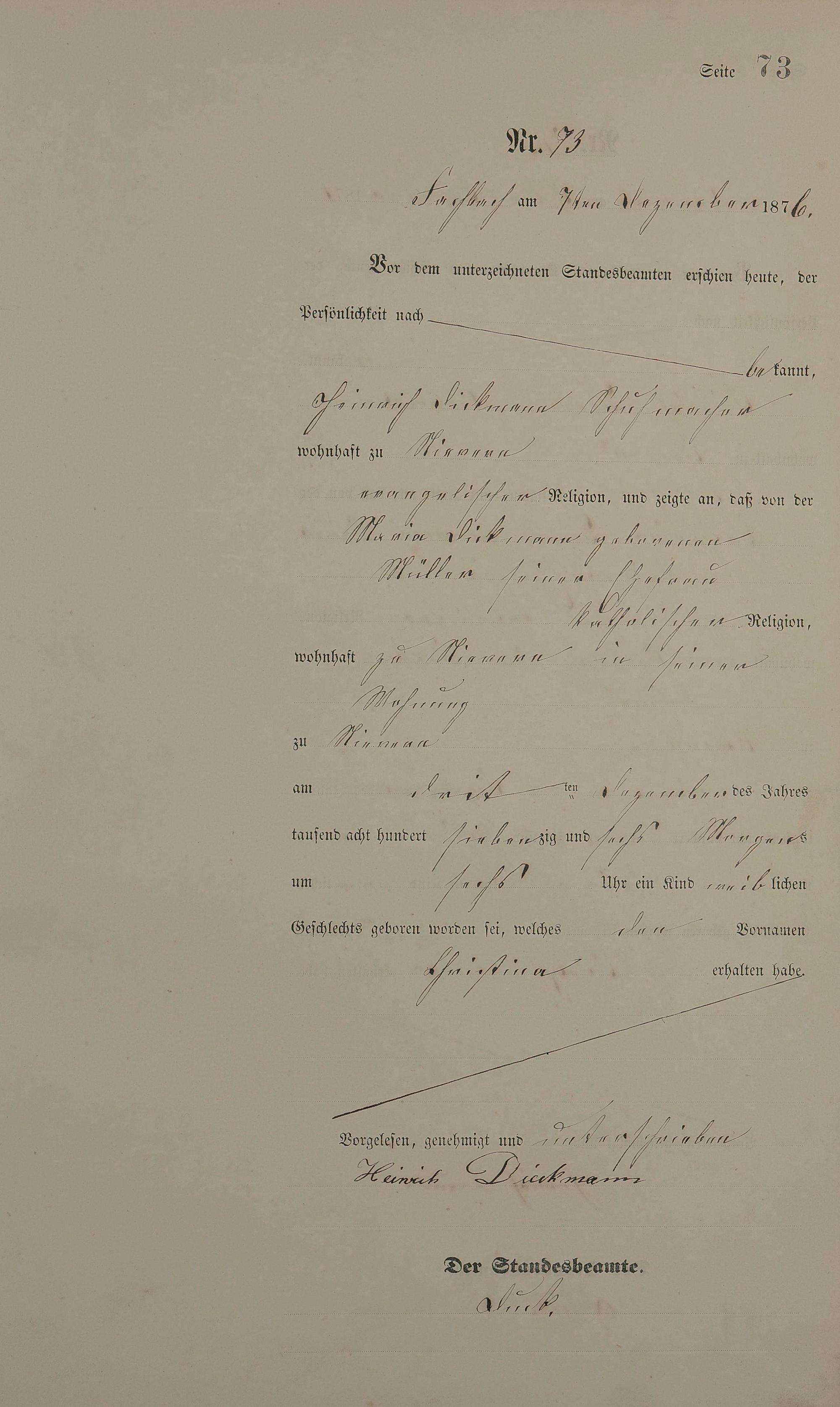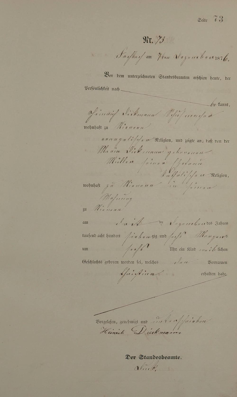 Geburtsregister 1876