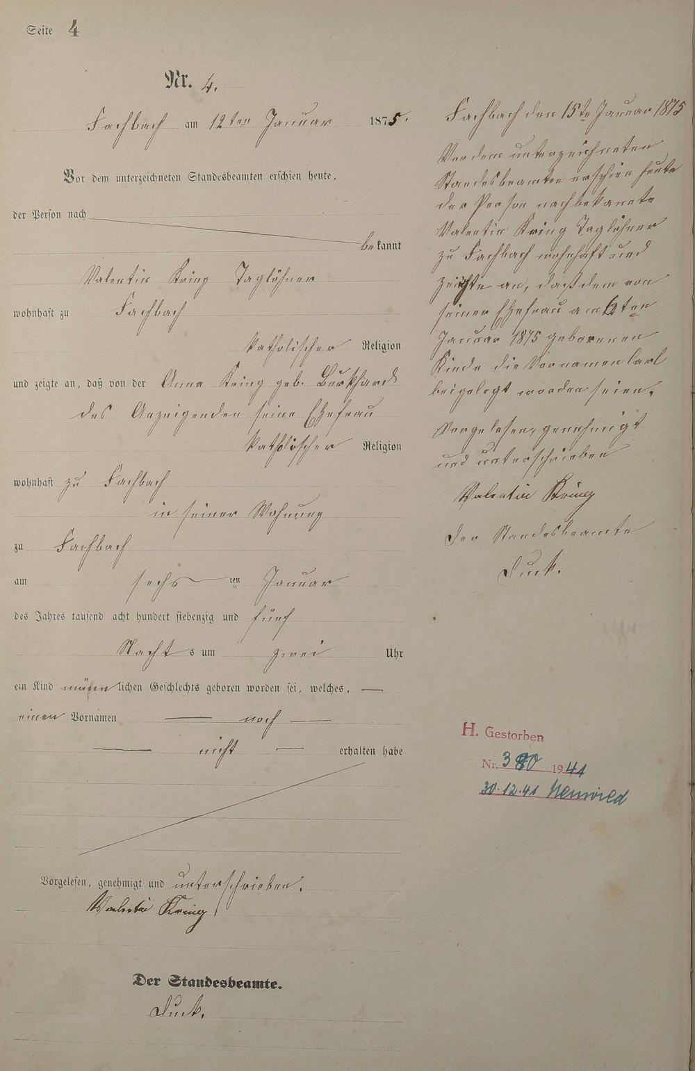 Geburtsregister 1875